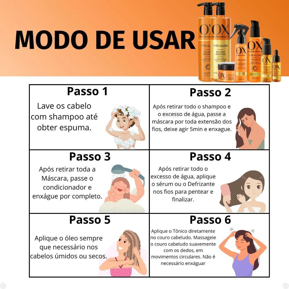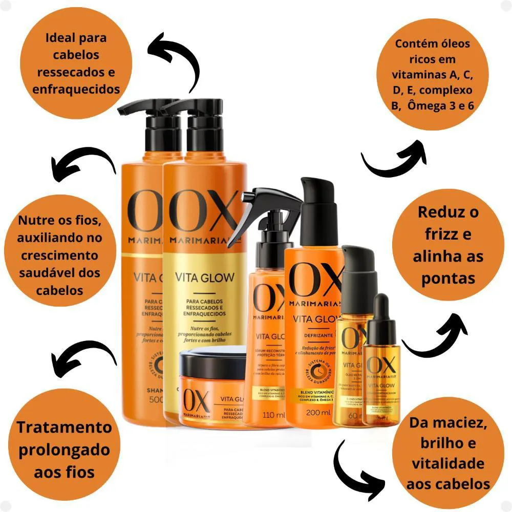 KIT OX MARI MARIA HAIR VITA GLOW: SHAMPOO, CONDICIONADOR, MáSCARA, SéRUM, DEFRIZANTE, ÓLEO E TôNICO