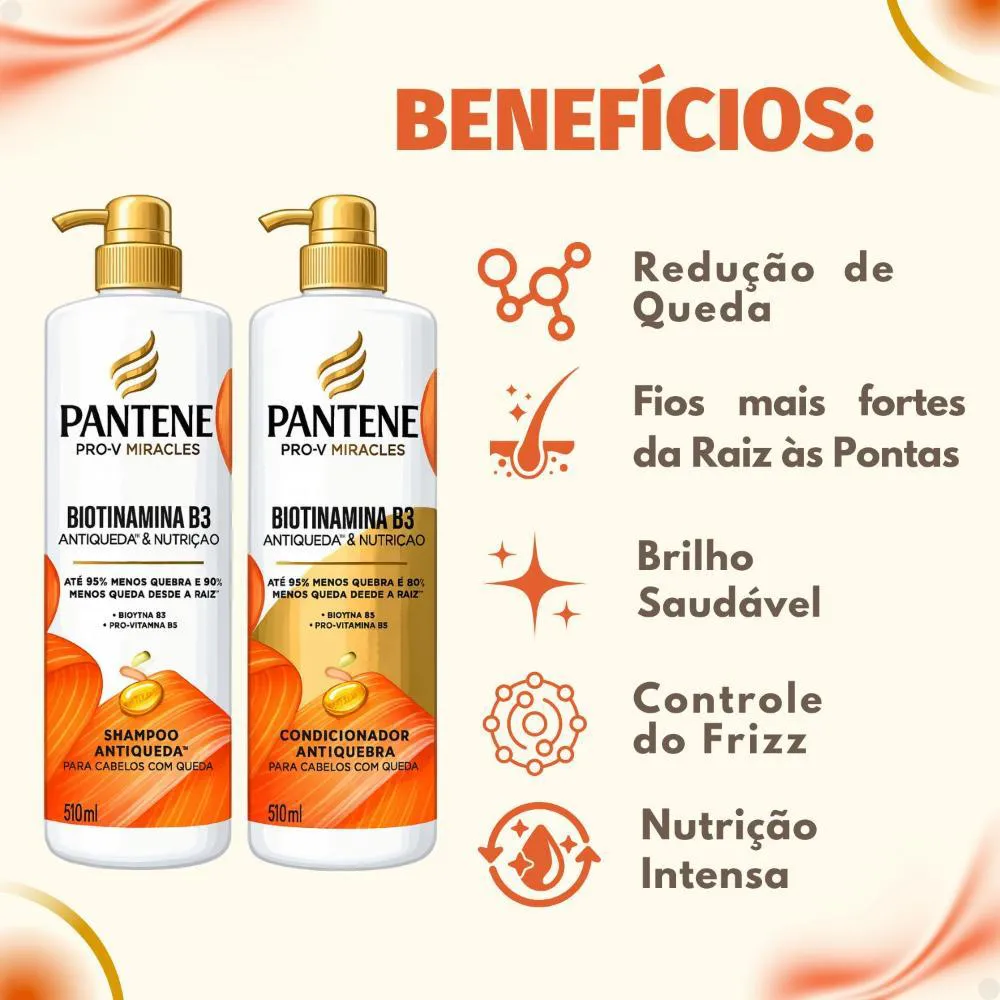 O Kit Pantene Pro-V Miracles Biotinamina B3, composto por Shampoo e Condicionador de 510ml, é a solução ideal para quem busca combater a queda de cabelo causada pela quebra e promover um fortalecimento capilar eficaz. Desenvolvido com uma fórmula avançada, este kit oferece um tratamento completo para transformar seus fios, deixando-os visivelmente mais saudáveis e resistentes de dentro para fora.Sua composição exclusiva, livre de parabenos, atua desde a raiz, energizando os folículos e estimulando a produção de queratina, essencial para um crescimento capilar saudável e a redução significativa da queda.