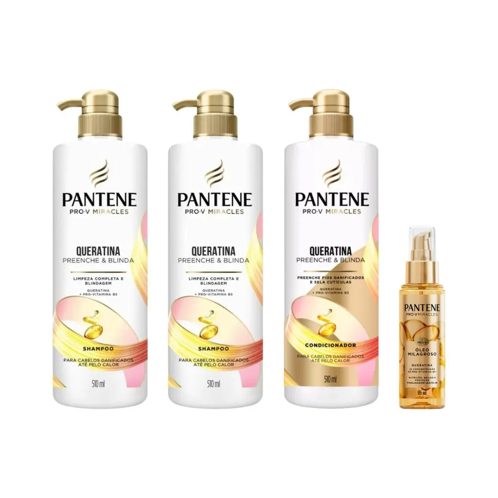 Kit Pantene Queratina – 2 shampoos 510ml + condicionador 510ml + Óleo 95ml Descrição: