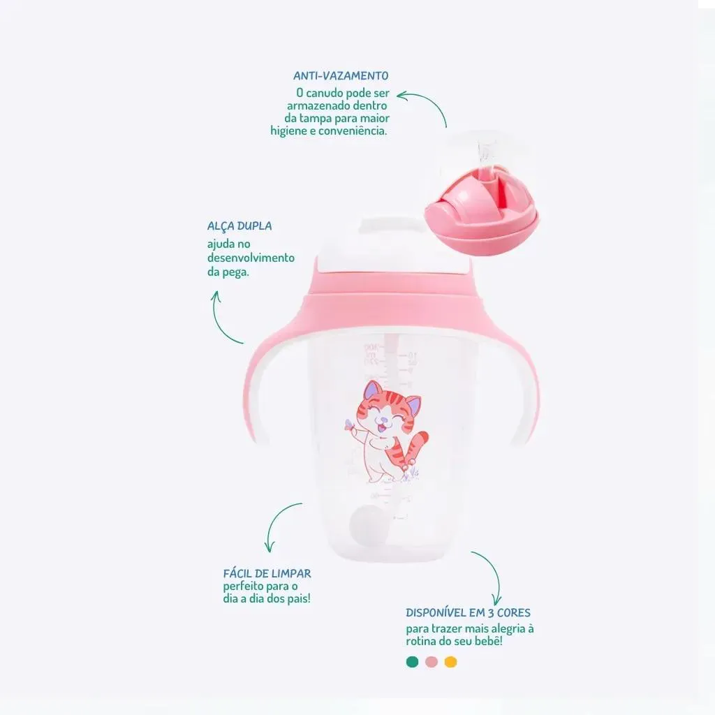 - Desenvolvimento e Bem-Estar: Apoia o desenvolvimento da coordenação e independência na hora de beber, incentivando hábitos saudáveis desde cedo.