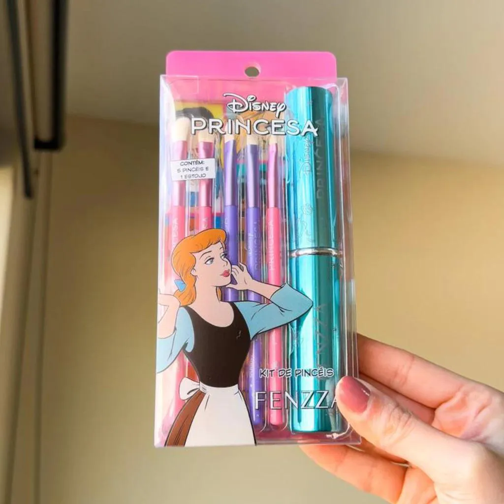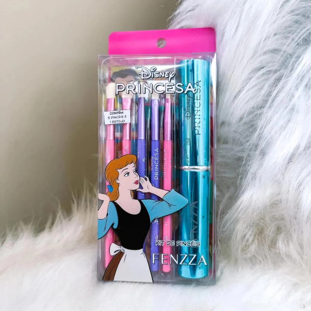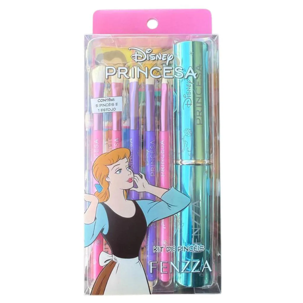 KIT PINCEL FENZZA DIS135 PRINCESA DISNEY (C/5+ESTOJO) Esse lindo kit contém funcionabilidade, leveza e acabamento impecável em um so conjunto. Cada Pincel possui cabo em madeira com impressao em uma cor, design ergonômico e acabamento resistente. As cerdas sintéticas em nylon são macias, duráveis e ideais para aplicações precisas e esfumados suaves.