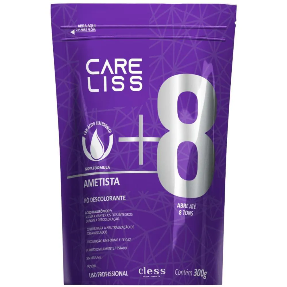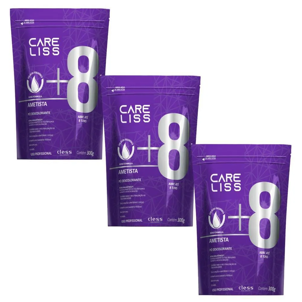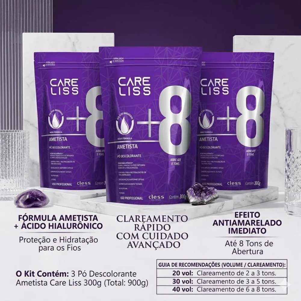 - 40 volumes: Clareamento de 6 a 8 tons.Esse kit contém:3 Pó Descolorante Ametista Care Liss 300g