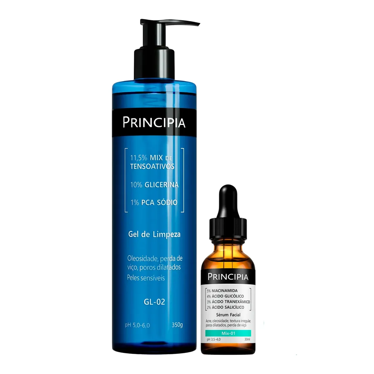 Kit Principia Gel de Limpeza Suave GL-02 350g + Sérum Renovador Antiacne Facial Mix-01 30ml
