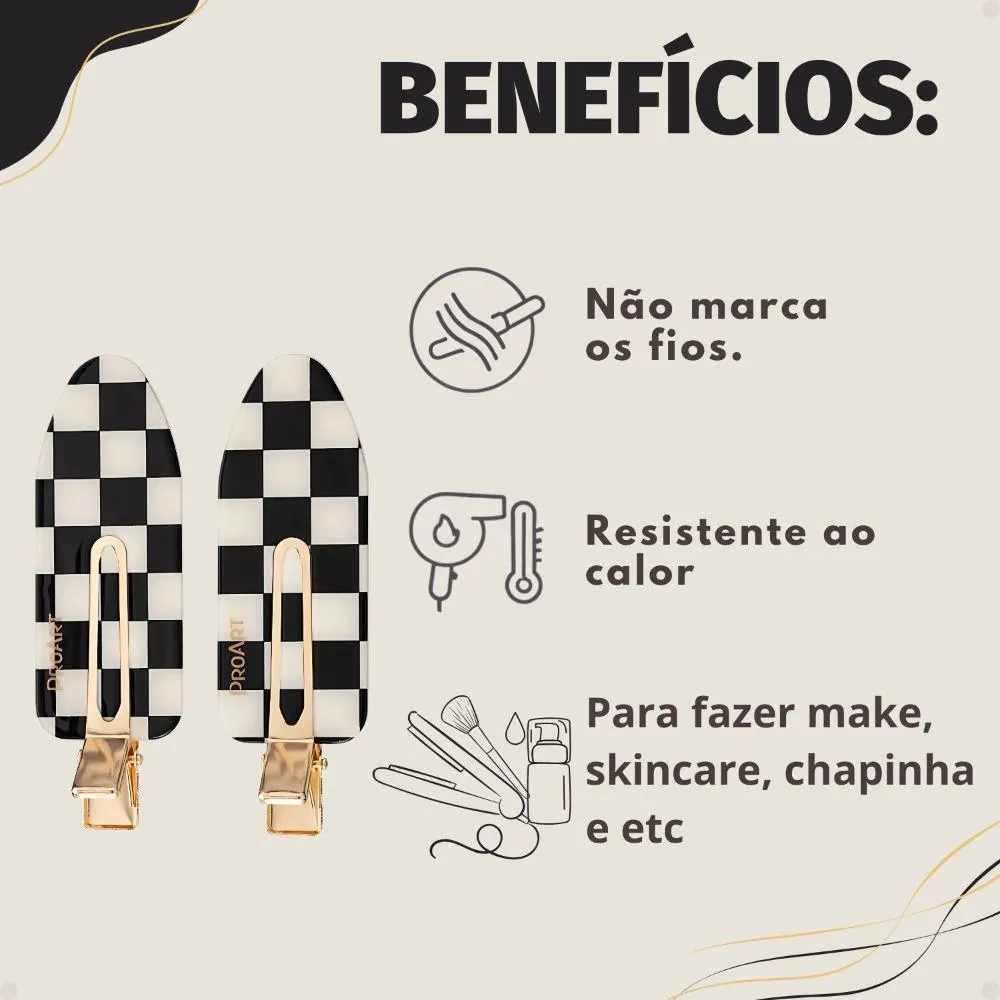 Prende os cabelos com firmeza sem deixar marcas ou repuxar os fios.Ideal para manter a franja e laterais organizadas durante rotinas de beleza.Remoção fácil e suave, protegendo a integridade do cabelo.Versátil, pode ser utilizado em todos os tipos de cabelo.