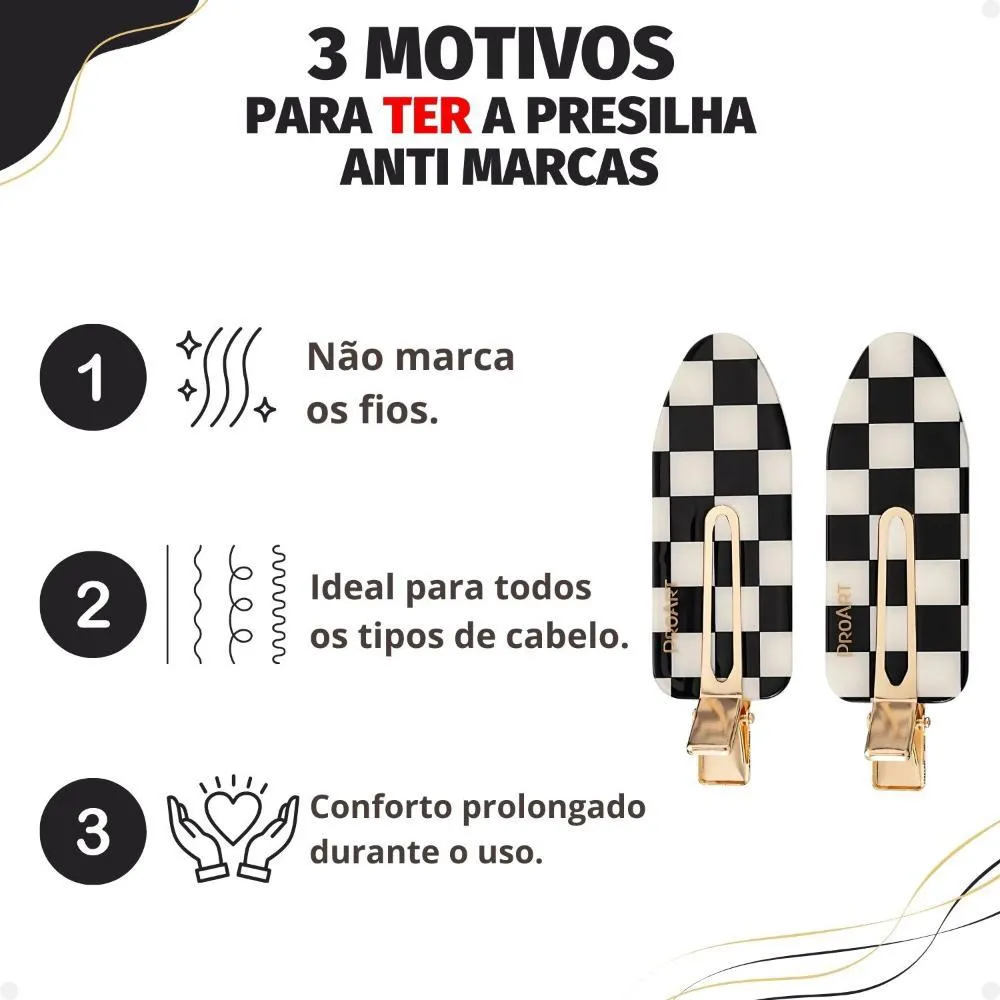 - Presilhas que não deixam marcas nos cabelos.