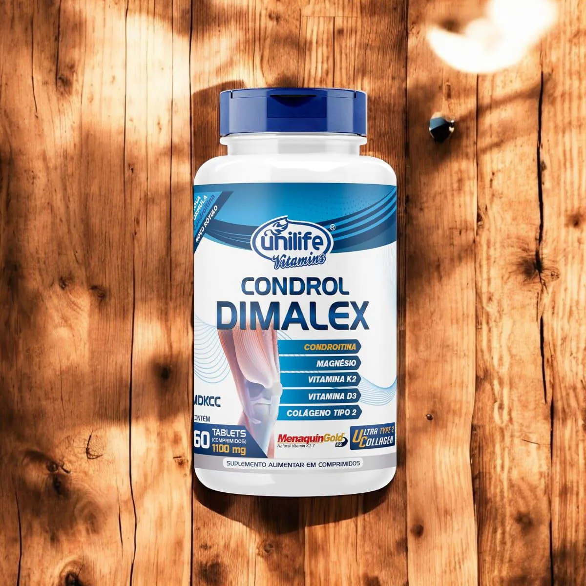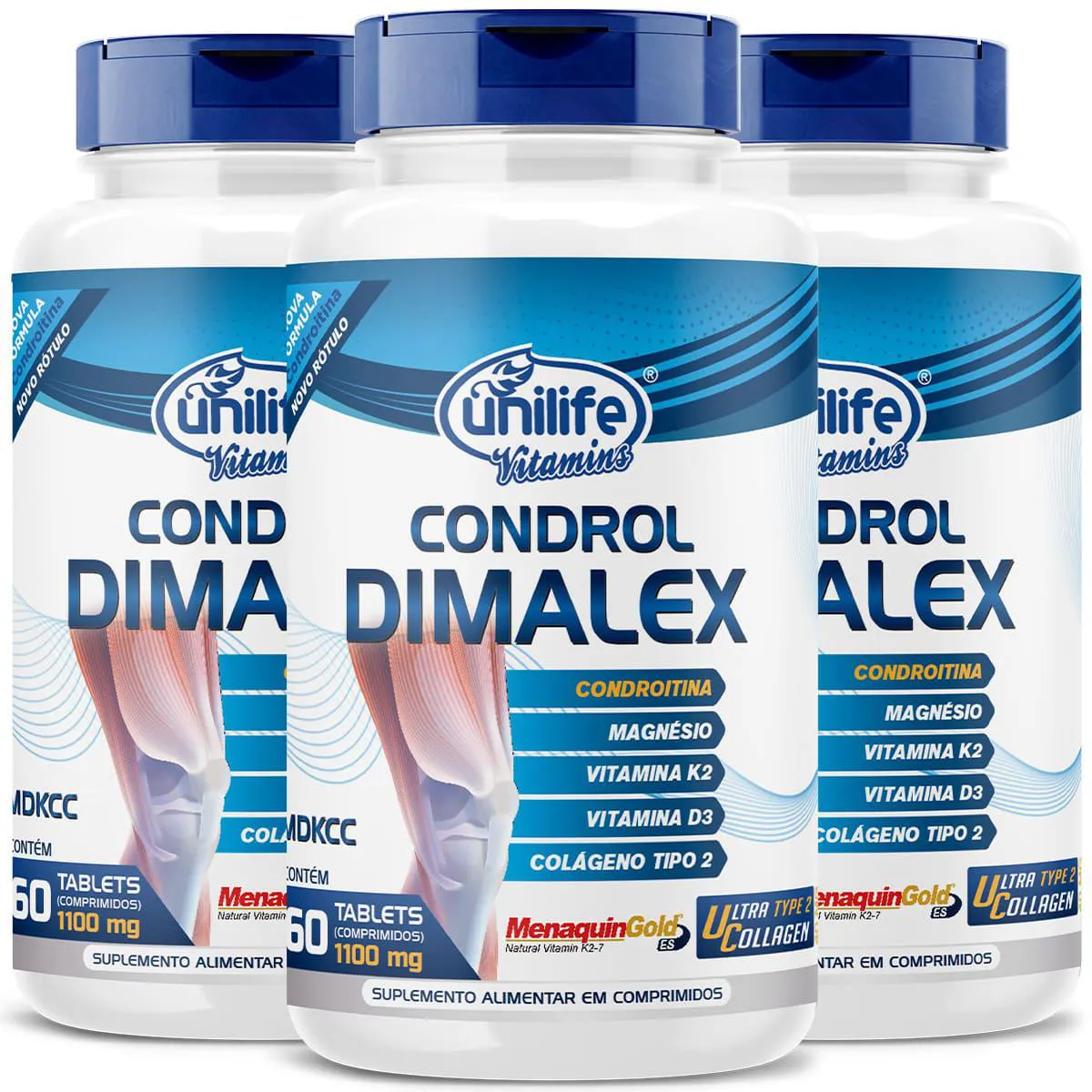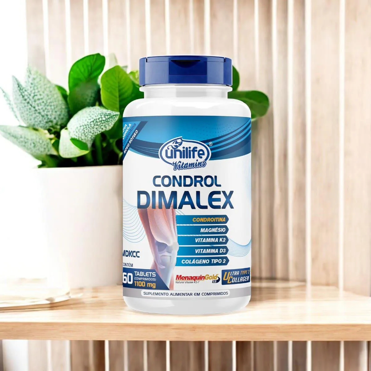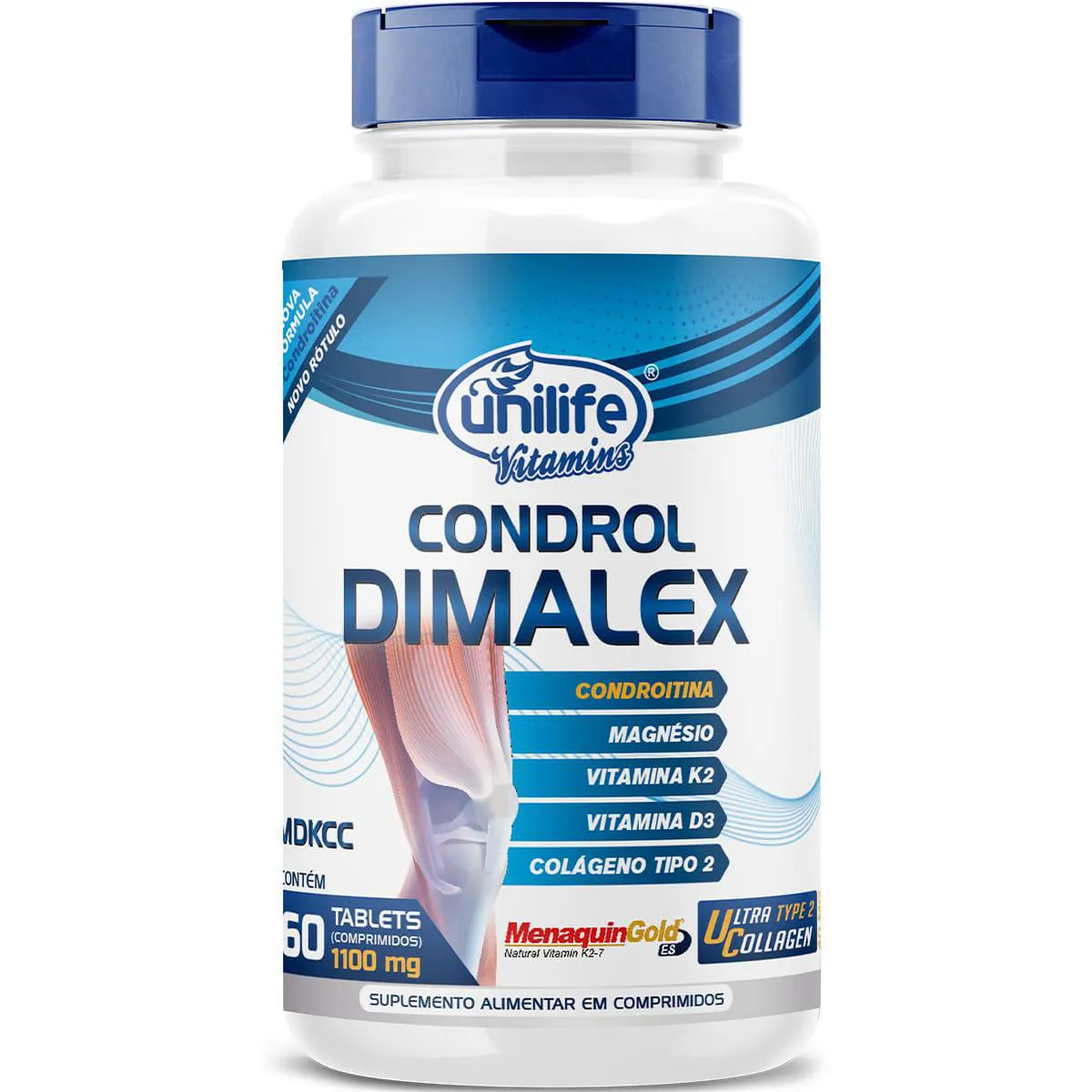 O Condrol Dimalex da Unilife é um suplemento alimentar desenvolvido para auxiliar na manutenção da saúde articular e óssea. Sua fórmula combina ingredientes de alta qualidade, incluindo colágeno tipo II não desnaturado, sulfato de condroitina, magnésio dimalato, vitamina K2 (menaquinona-7) e vitamina D3, que atuam sinergicamente para promover o bem-estar das articulações e ossos.
