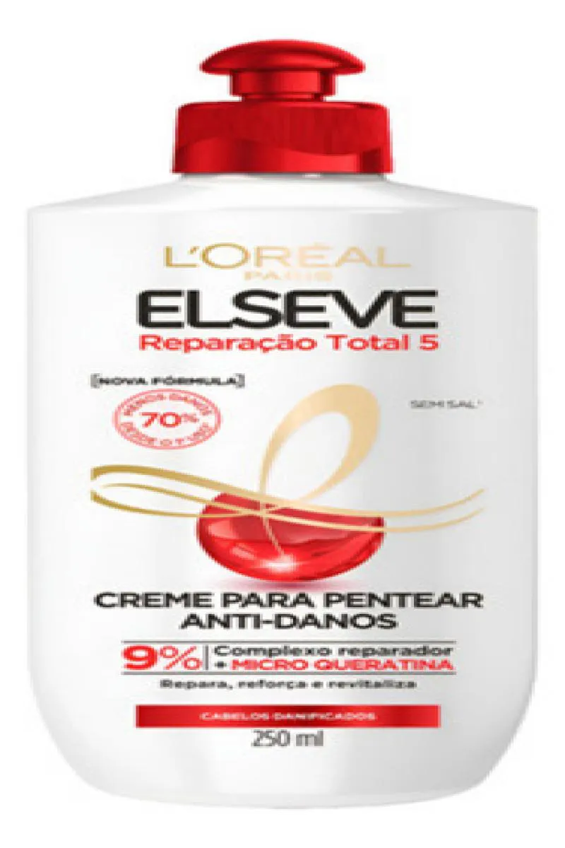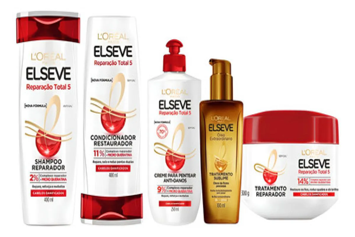A linha Elseve Reparação Total 5 atua contra os principais danos: Quebra, Rigidez, Opacidade, Ressecamento e pontas duplas. Com uma ação exclusiva da cicatri ceramida, repara já no 1º uso! Ajuda a reduzir fios quebradiços, trazendo mais brilho e flexibilidade ao cabelo. Remove as pontas duplas e recupera a estrutura da fibra deixando os fios uniformes, selados e protegidos como se fosse uma cicatrização da fibra capilar.