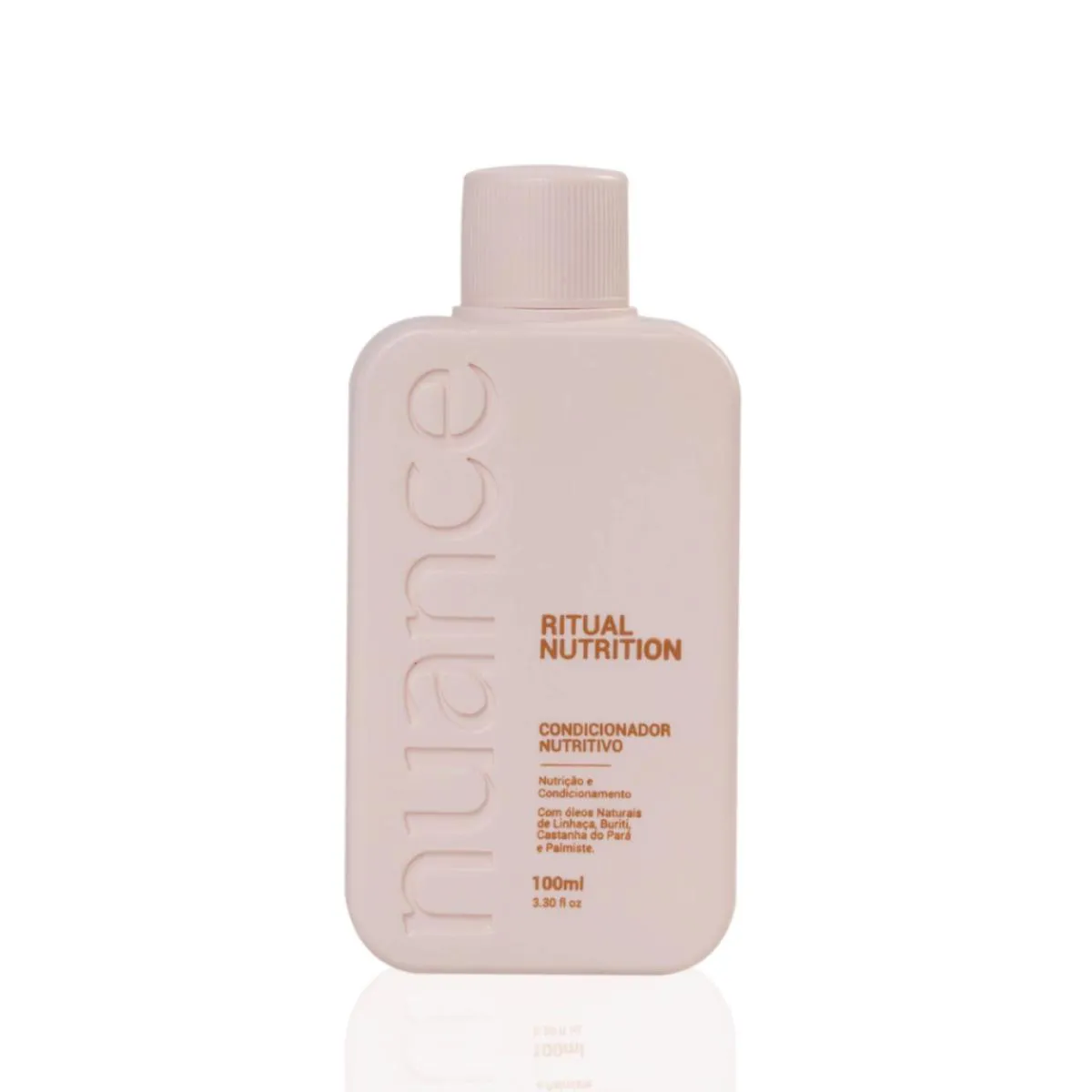 - Condicionador Ritual Nutrition 100ml – Hidrata e desembaraça, selando as cutículas e proporcionando brilho e maciez.