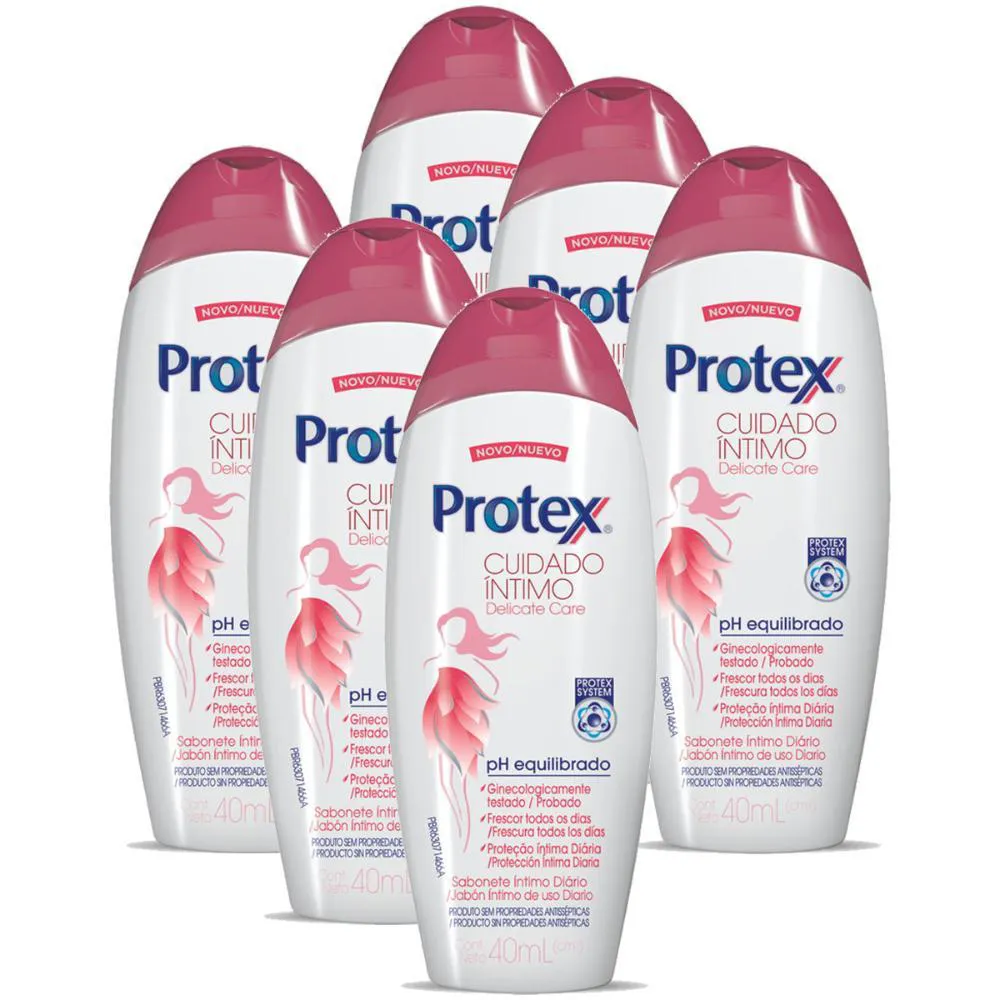 KIT SABONETE ÍNTIMO LíQUIDO PROTEX DELICATE CARE 40ML COM 6 UNIDADES