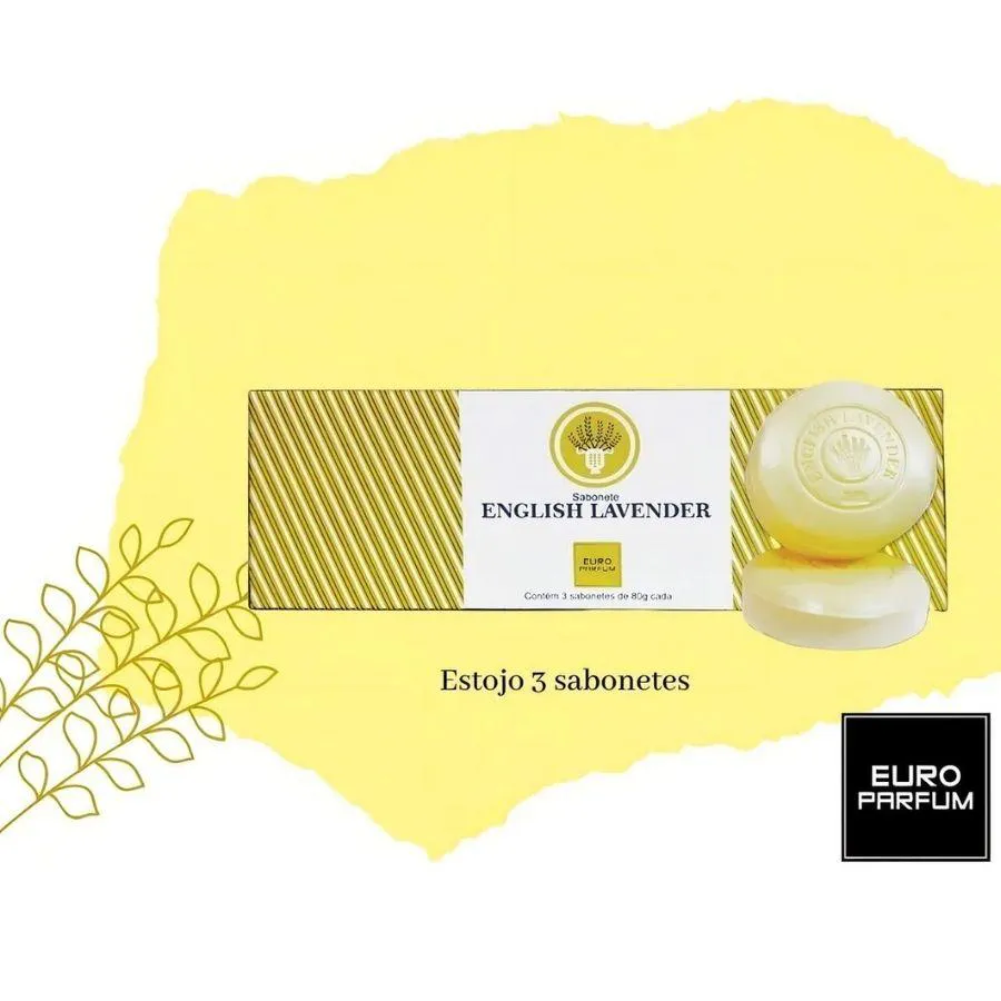 Kit Europarfum English Lavender   Kit com três sabonetes em barra. Europarfum confere um aroma que lembra um pomar de lavandas do campo.    O Kit Europarfum English Lavender oferece a mesma fragrância do desodorante colônia, é refrescante e sofisticado, delicioso para usar em um dia de verão..   Contém:  3 Sabonetes em barra 80g cada