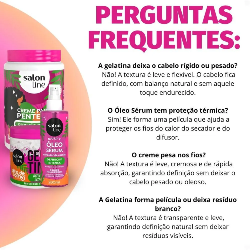 Kit Salon Line Definição Intensa: Creme para Pentear 1kg, Gelatina Capilar 550g e Óleo Sérum Capilar 200ml