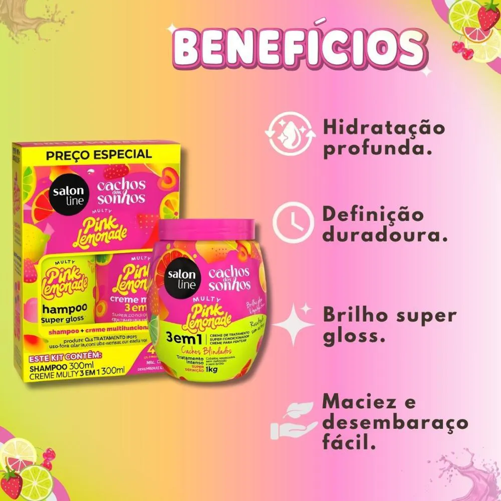 Kit Salon Line Pink Lemonade Cachos dos Sonhos: Shampoo e Creme Multifuncional 300Ml + Creme Capilar 1Kg