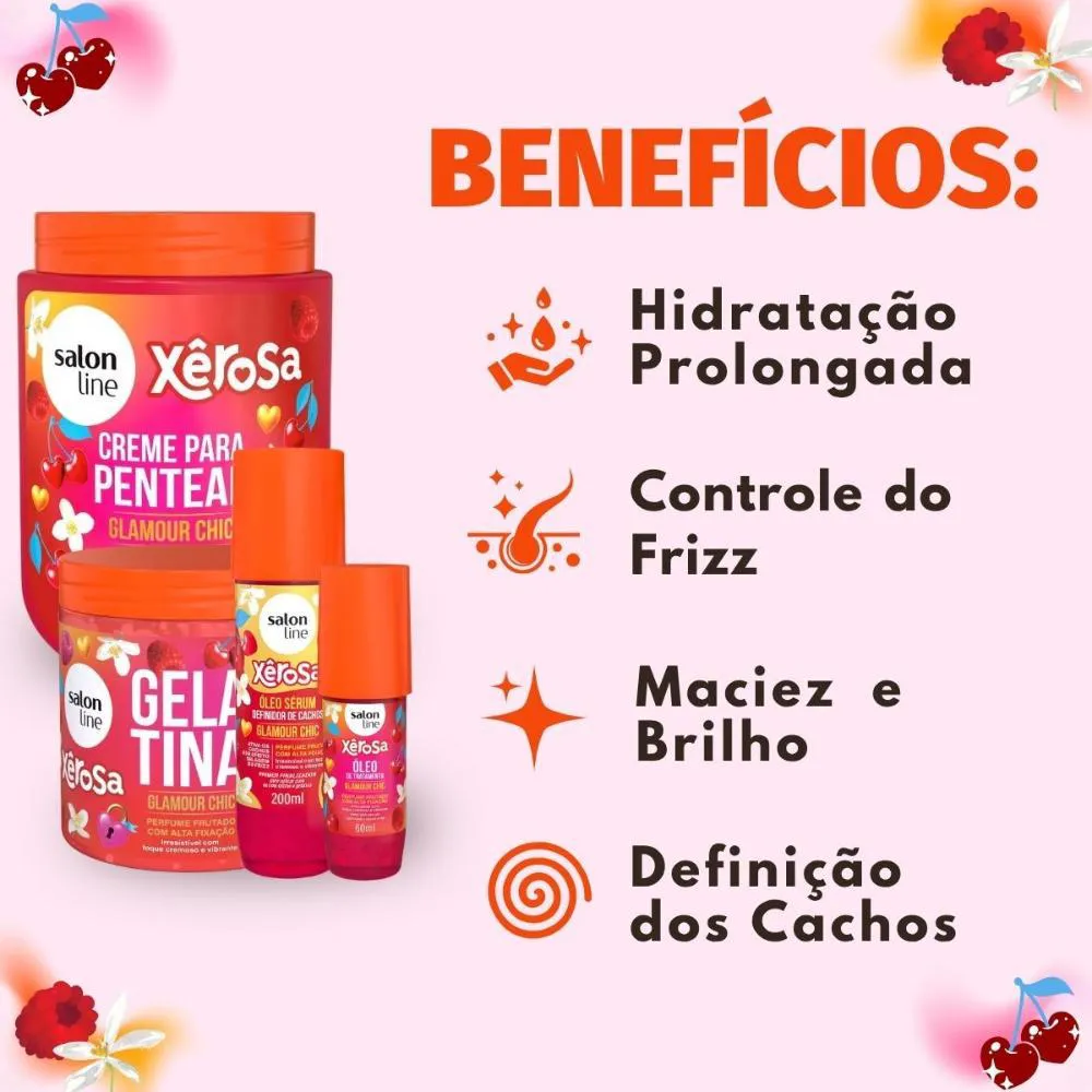 Kit Salon Line Xêrosa Glamour Chic: Creme para Pentear 800g, Gelatina Capilar, Óleo Sérum e Óleo Capilar 60ml