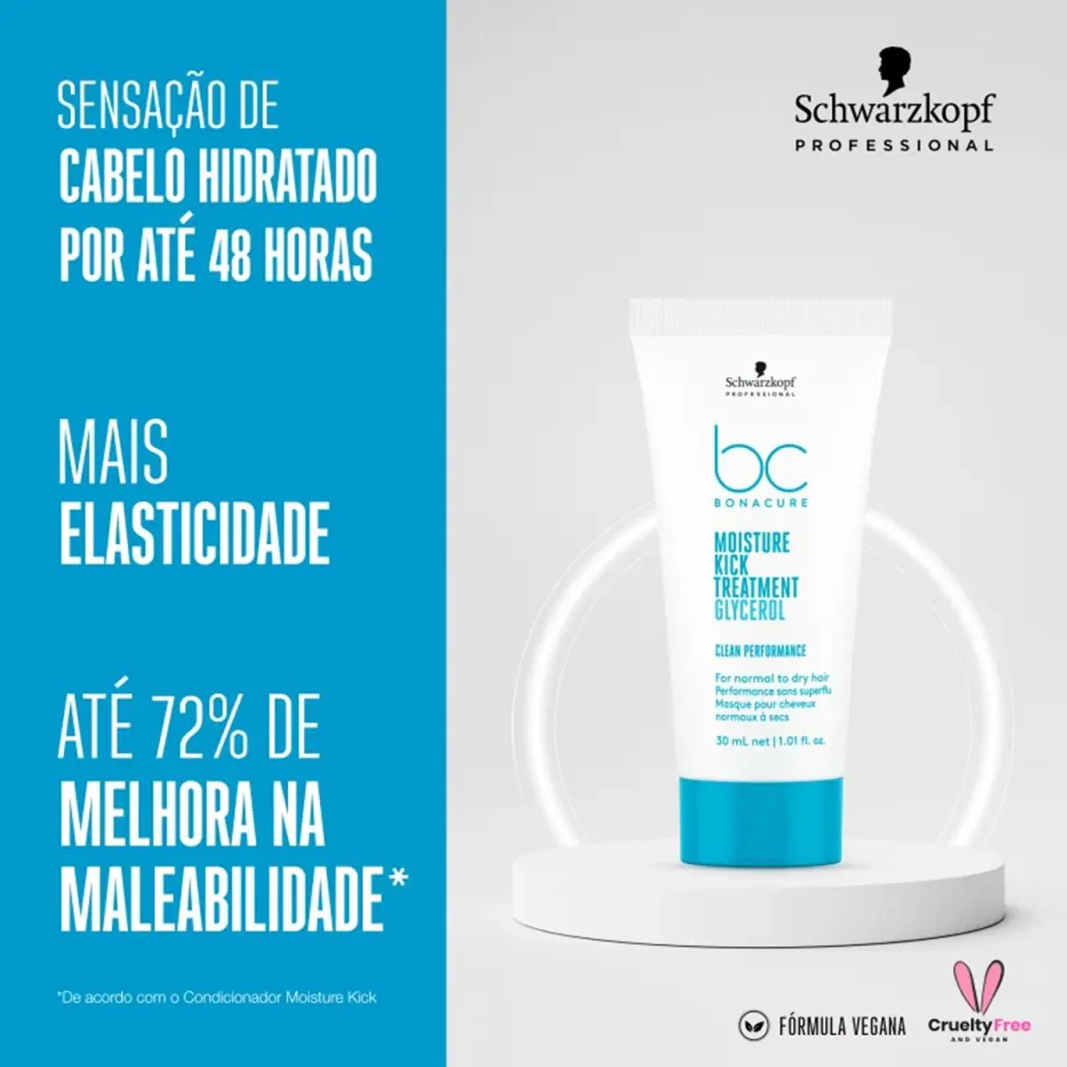 Transforme seus cachos com o Kit Schwarzkopf BC Clean Performance Moisture Kick! Este kit completo proporciona hidratação intensa, definição e controle do frizz. O shampoo limpa suavemente, o condicionador desembaraça e o creme de pentear Curl Bounce define os cachos e proporciona um efeito molhado natural. A máscara oferece nutrição profunda, deixando os fios macios e brilhantes. Perfeito para quem busca cachos saudáveis e bonitos!