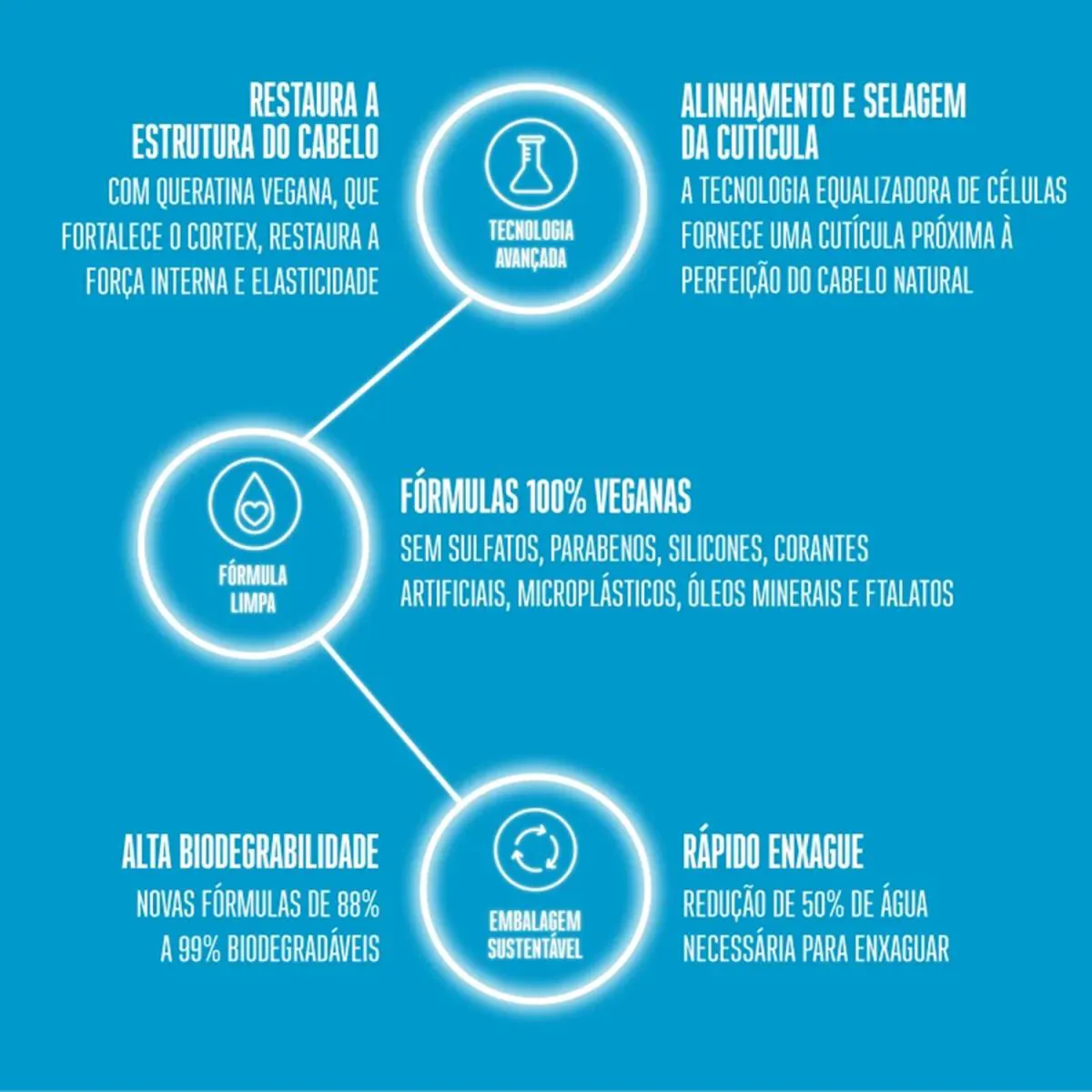 - Aplique: Nos cabelos molhados, massageando suavemente o couro cabeludo e os fios.