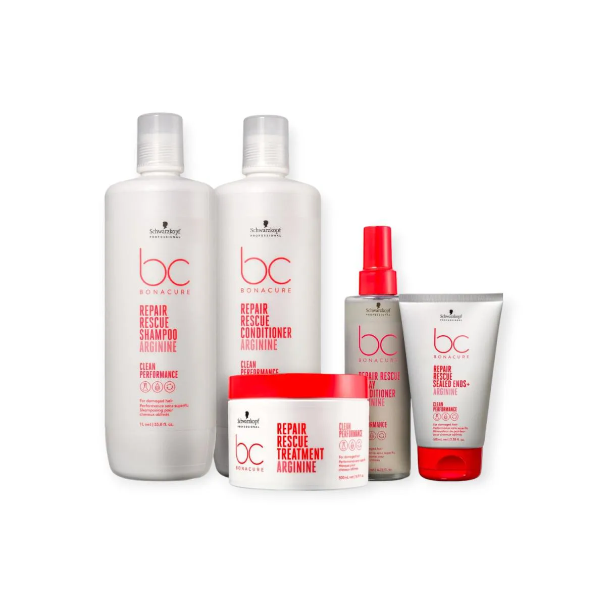 KIT SCHWARZKOPF REPAIR RESCUE - SHAMPOO 1L + CONDICIONADOR 1L + MáSCARA 500G + LEAVE-IN 200ML + SEALED ENDS 100ML