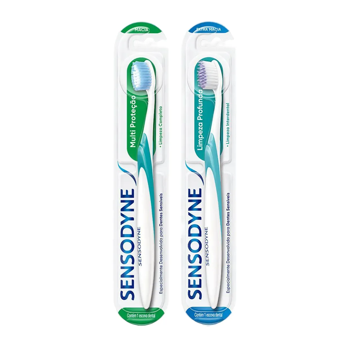 Kit Sensodyne Escova de Dente Multi Proteção Macia + Escova de Dente Limpeza Profunda Extra Macia