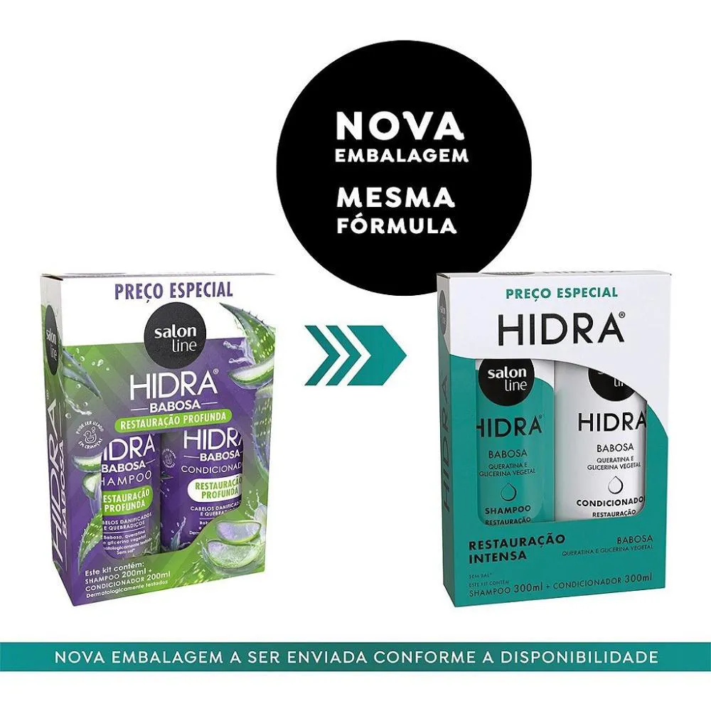 Glicerina vegetal: hidratação intensa e fortalecimento dos cabelos, combatendo as pontas duplas e deixando os fios macios e sedosos. Modo de usar: Cada produto do kit tem uma forma de aplicação. shampoo Hidra Babosa: aplique o Shampoo Salon Line Hidra Restauração Intensa no cabelo úmido e massageie. Enxágue. Se necessário, repita a aplicação. condicionador Hidra Babosa: aplique o Condicionador Hidra Restauração Intensa no cabelo úmido e espalhe uniformemente por toda a extensão dos fios. Deixe agir de 1 a 3 minutos. Enxágue abundantemente. Dicas de uso: Para melhores resultados e uma ultradefinição, utilize o creme para pentear da linha Hidra Restauração Intensa.