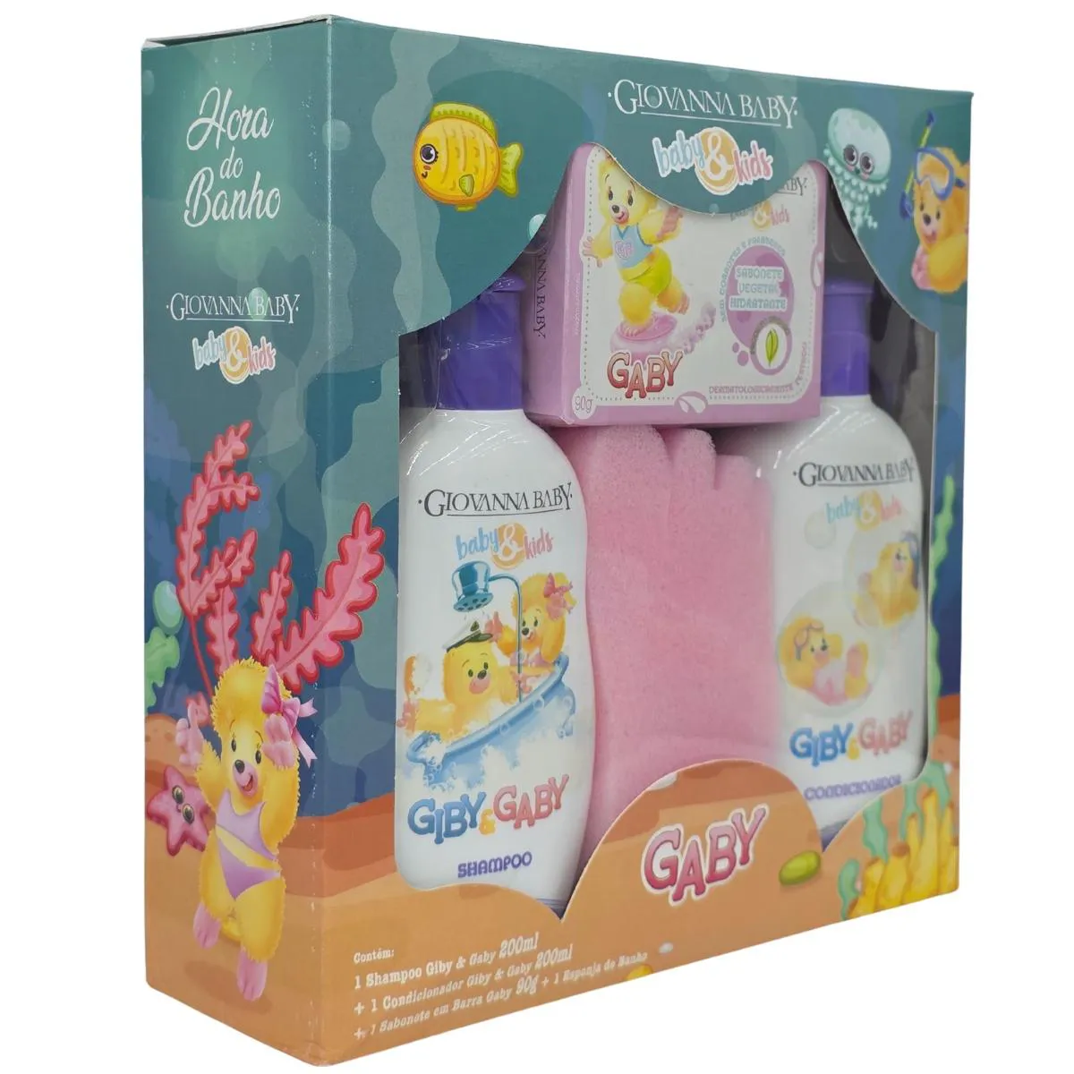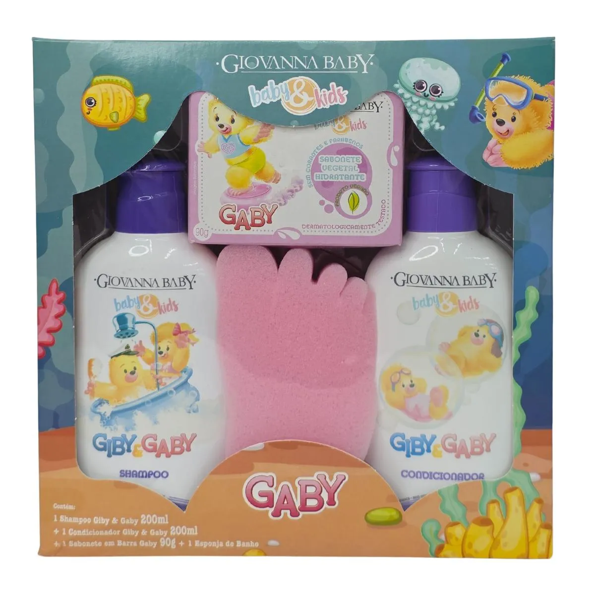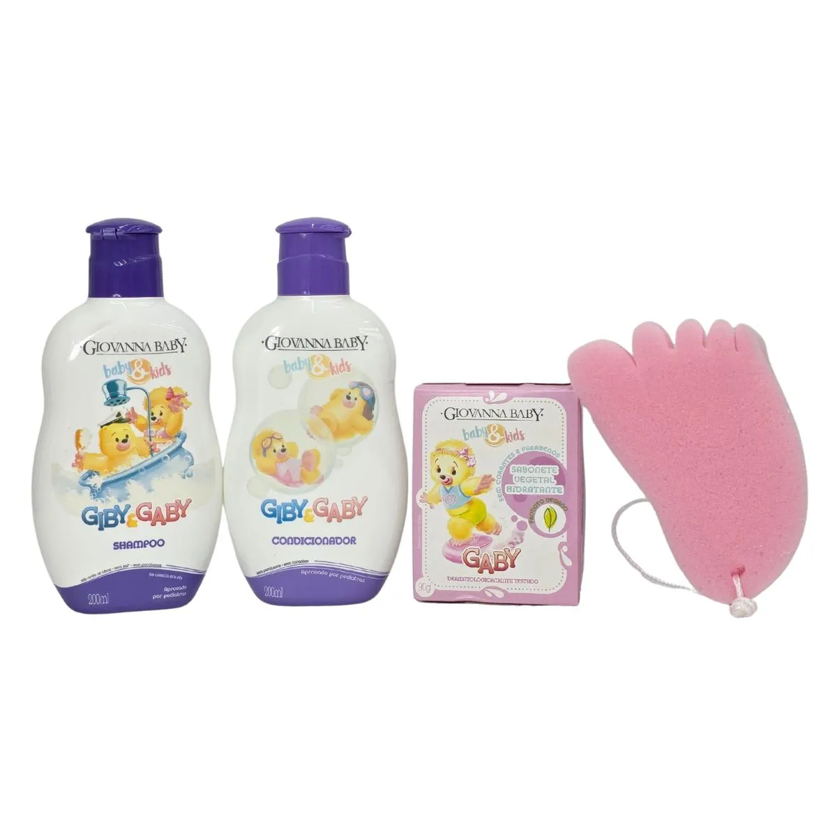 Kit Shampoo 200Ml + Condicionador 200Ml + Sabonete Barra 90G + Esponja de Banho Baby & Kids Gaby Vegano Giovanna Baby