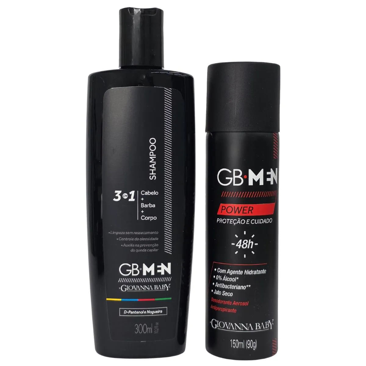 Kit Shampoo 3 em 1 300Ml + Desodorante Aerossol Power 150Ml / 90G Gb Men Vegano Giovanna Baby