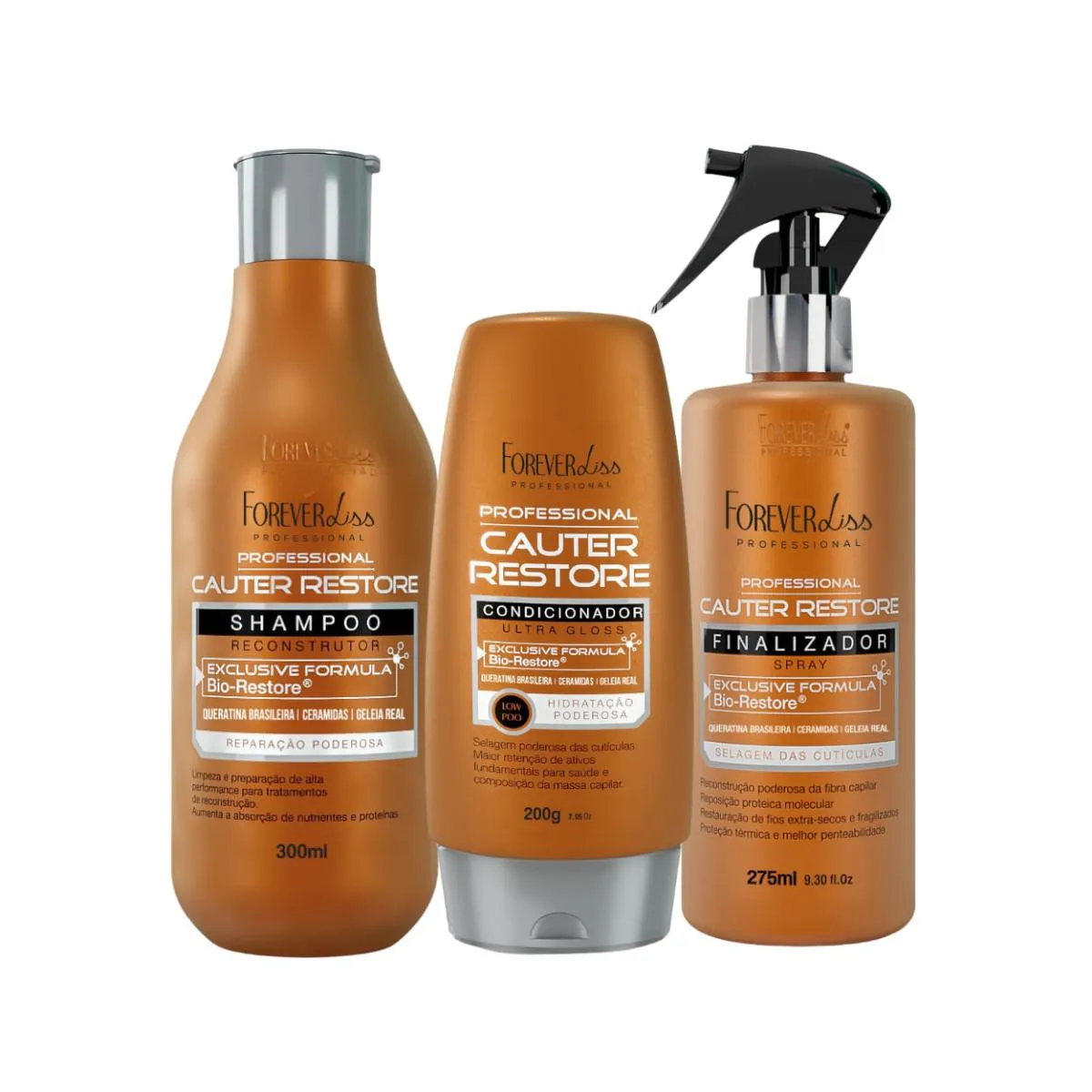 Kit Shampoo Condicionador E Spray Cauterização Forever Liss