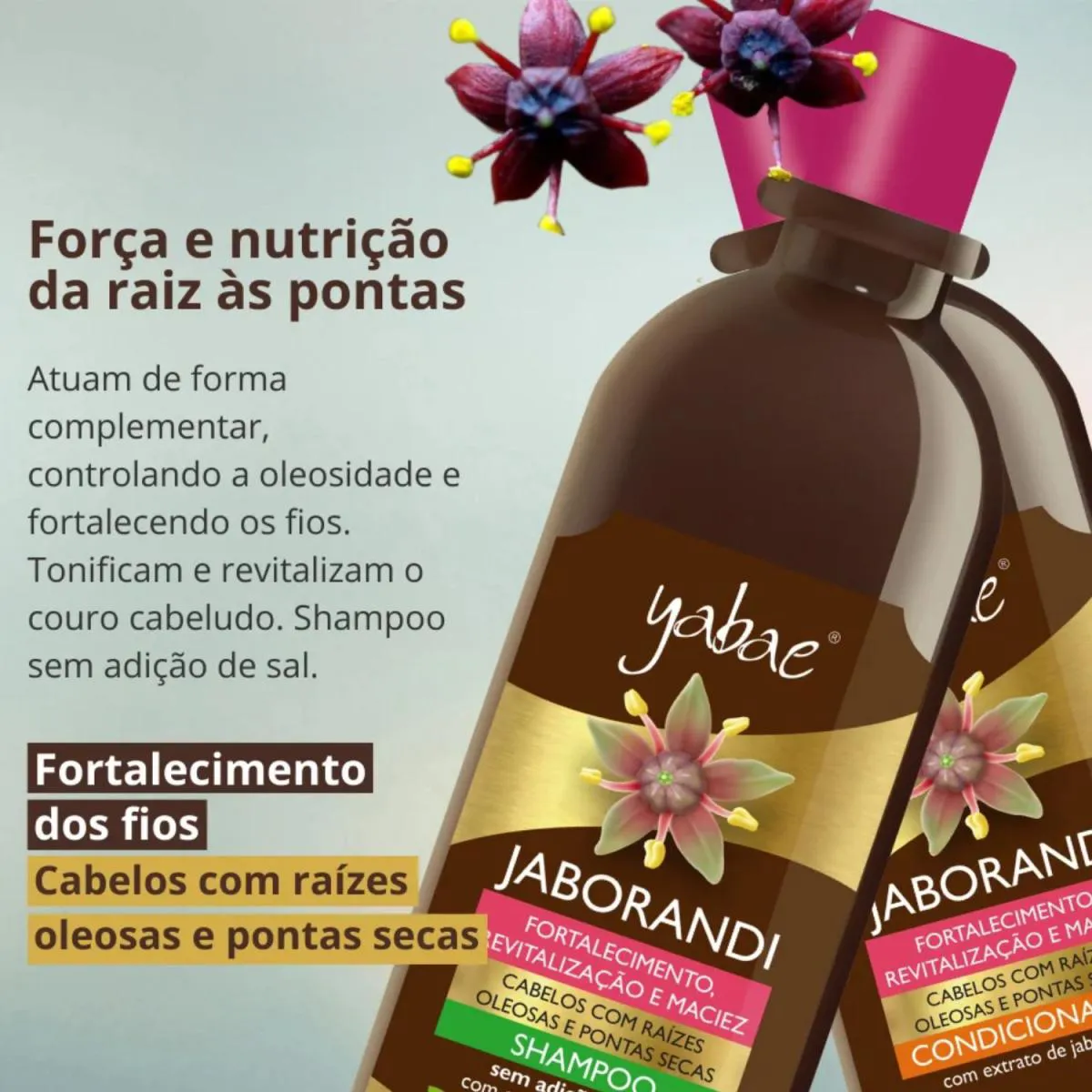 Kit shampoo condicionador Fortalecimento Jaborandi YebaeNeste produto está sendo 1(uma) unidade do shampoo do jaborandi 500ml e 1(uma) unidade do condicionador do jaborandi 500mlCondicionador Yabae Jaborandi 500ml