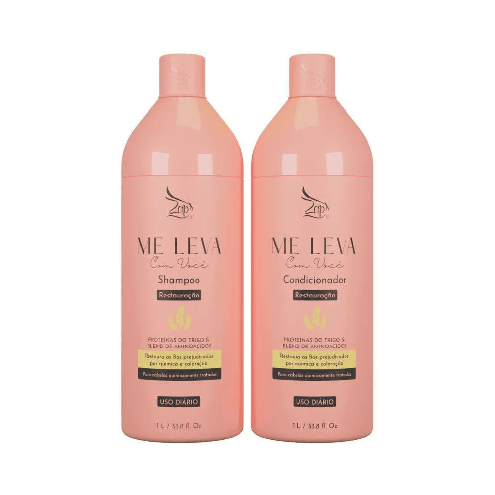 Kit Shampoo Condicionador Zap Me Leva com Voce Pós Quimica 1L