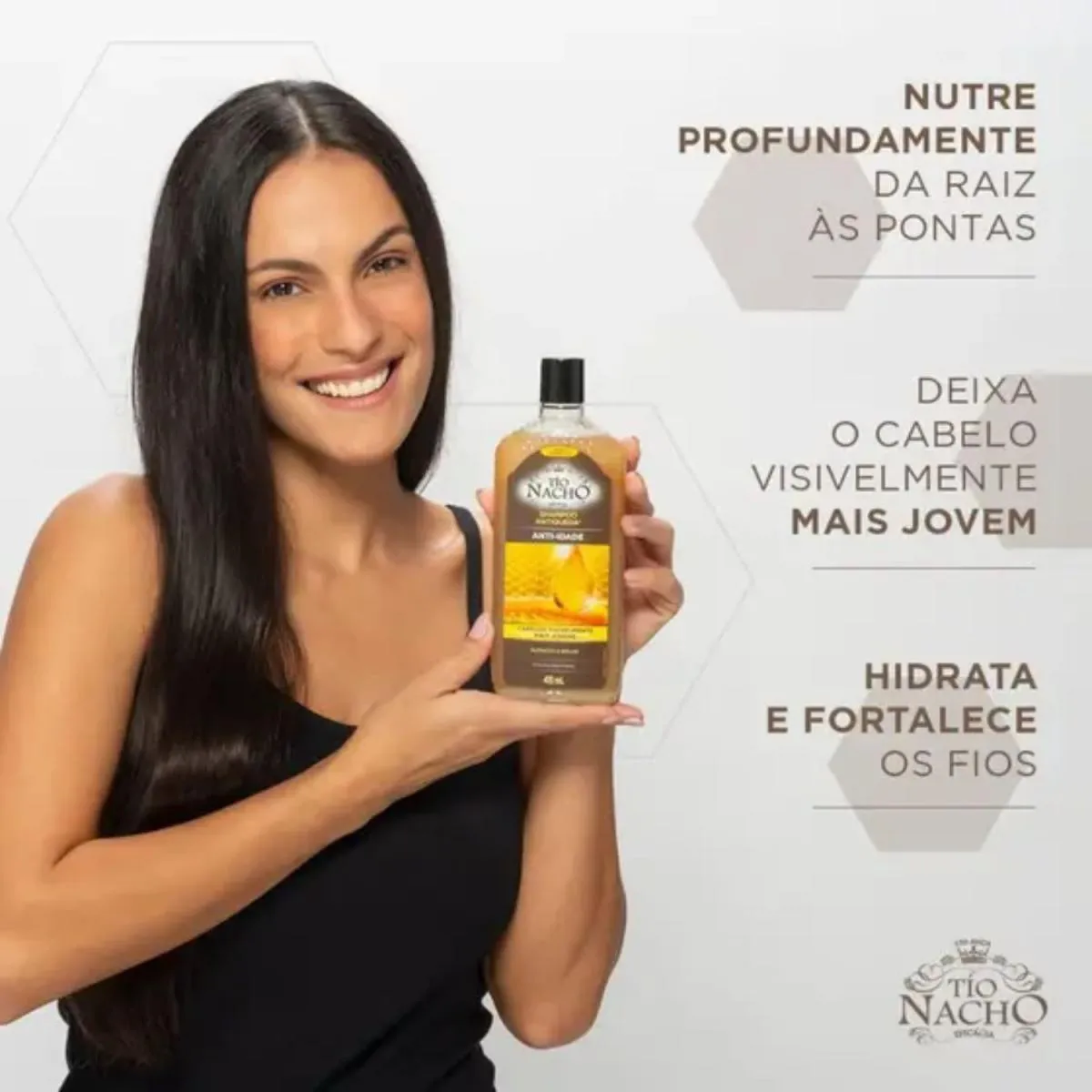 O Shampoo Tío Nacho Anti-Idade 415mL é um produto conhecido por seus benefícios para fortalecimento capilar e combate ao envelhecimento dos fios. Ele contém ingredientes naturais, como a geleia real, que nutre e revitaliza o cabelo, deixando-o mais forte e resistente.