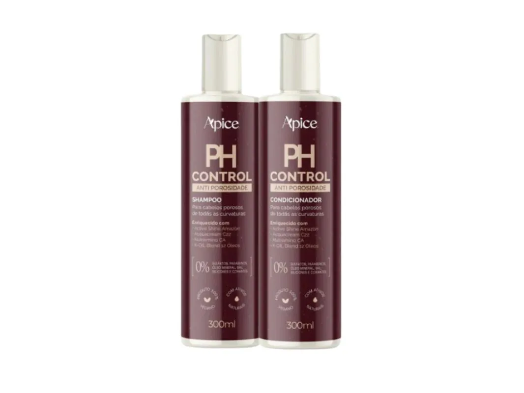 - shampoo PH Control (300ml) – Limpa suavemente enquanto equilibra o pH e prepara os fios para receber tratamento.