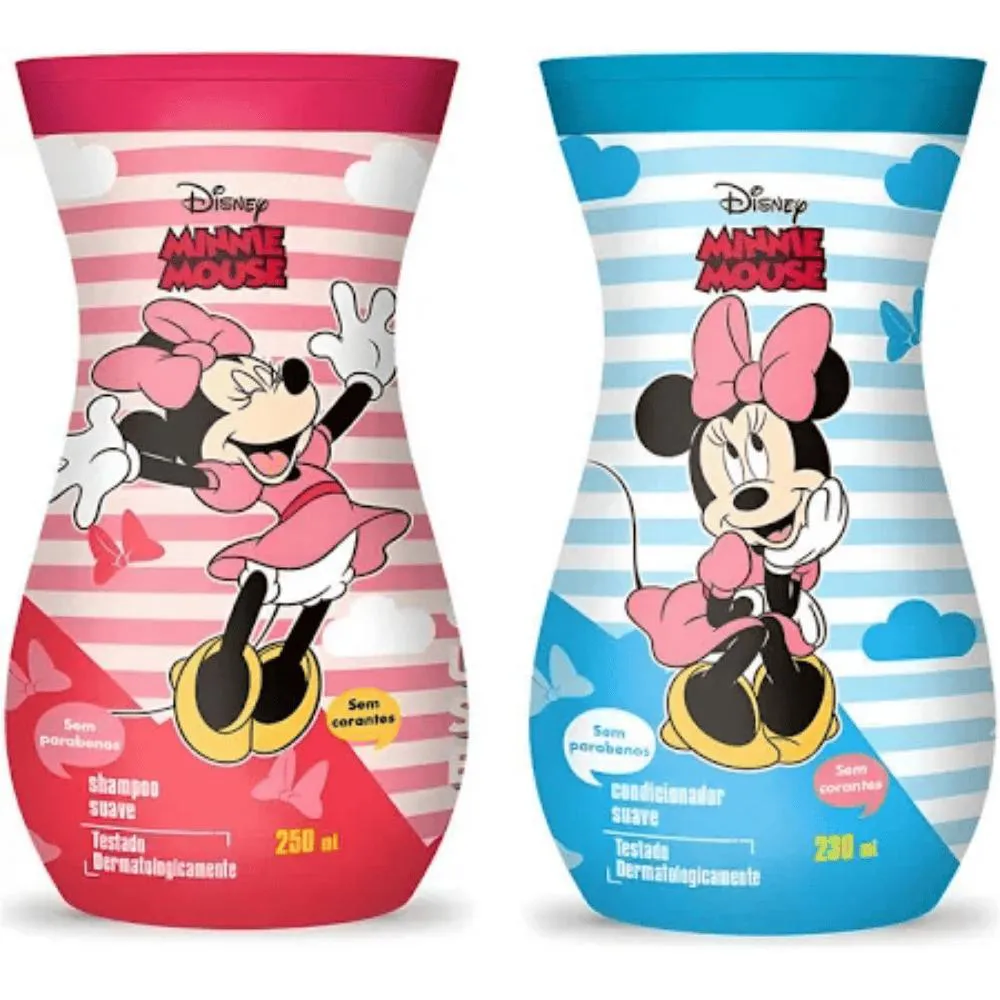 O Kit shampoo + condicionador Nutriex Disney Minnie Mouse infantil foi desenvolvido especialmente para cuidar dos cabelos das crianças de forma delicada e divertida. Com embalagens exclusivas inspiradas na personagem Minnie Mouse, ele transforma o banho em um momento de alegria e cuidado. Sua fórmula é suave, dermatologicamente testada, sem corantes e sem parabenos, garantindo mais segurança para os pequenos. O shampoo limpa suavemente sem ressecar os fios, enquanto o condicionador hidrata, desembaraça e deixa os cabelos macios, fáceis de pentear e com brilho natural.