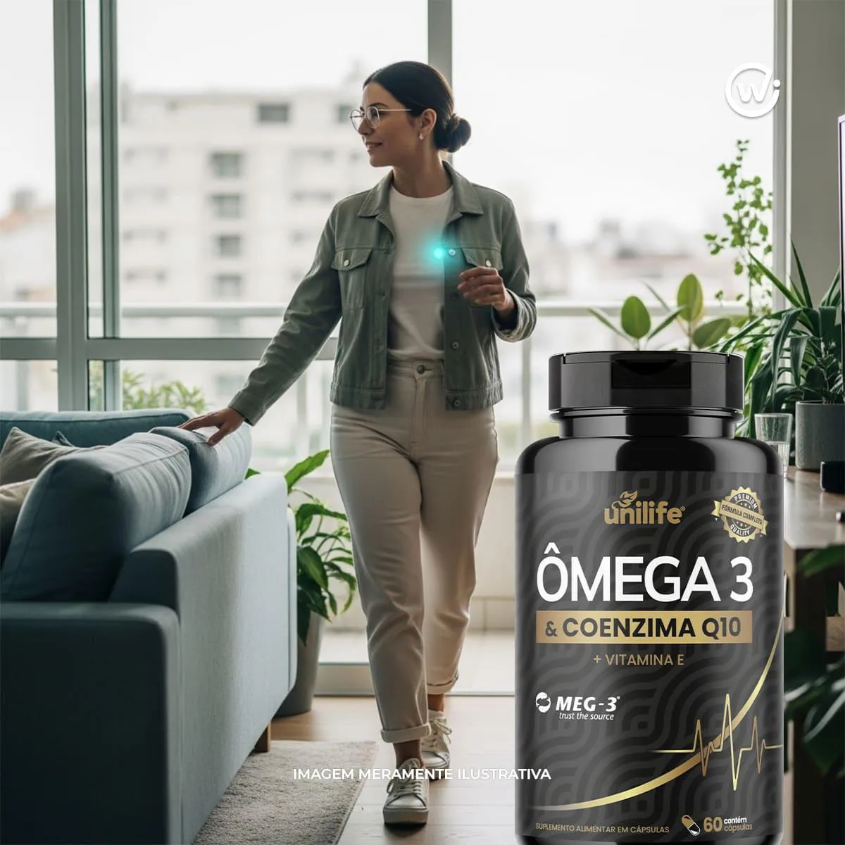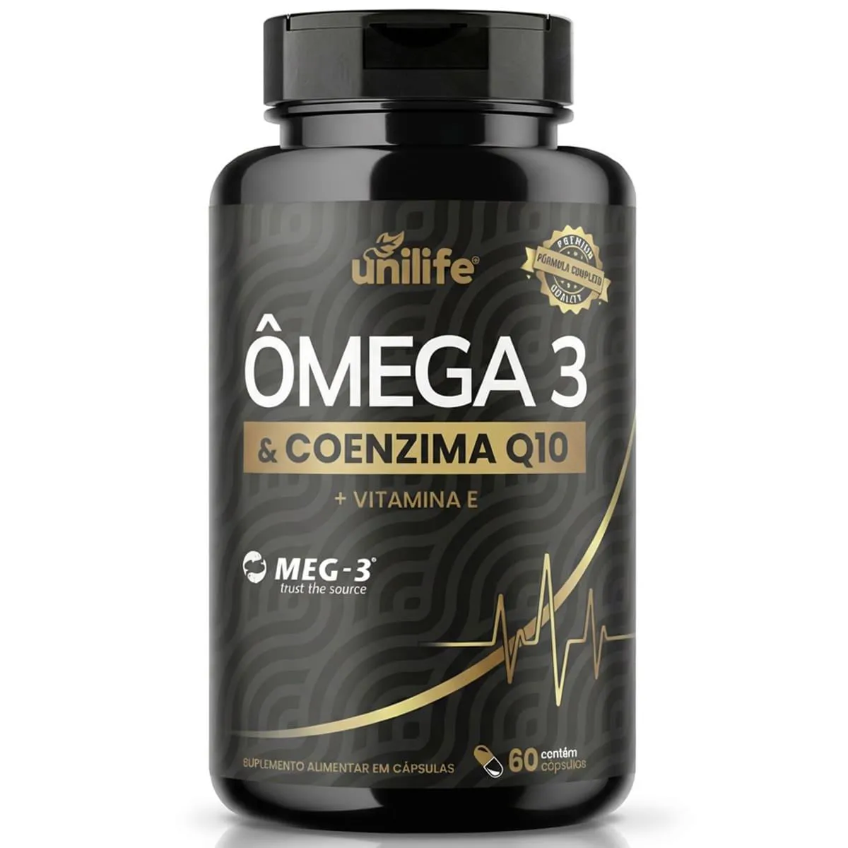 O suplemento Ômega-3 + Coenzima Q10 da Unilife combina óleo de peixe (fonte de ácidos graxos ômega-3 EPA/DHA) com a coenzima Q10, um composto presente nas células, essencial para produção de energia e com ação antioxidante. A fórmula costuma incluir também vitamina e, o que potencializa a proteção celular.A embalagem traz 60 cápsulas, indicada para uso adulto.
