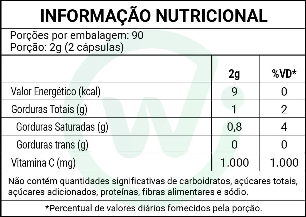- Outros componentes: Gelatina (cápsula), água purificada, umectante (glicerina), corante curcumina.