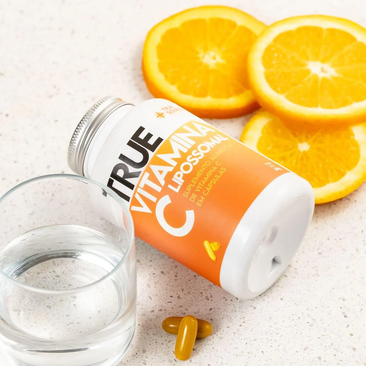 A Vitamina C Lipossomal da True Source é um suplemento avançado em cápsulas, contendo 1 000 mg de vitamina C por dose (2 cápsulas), formulado com tecnologia lipossomal. Isso significa que a vitamina C é encapsulada em lipossomas feitos com triglicerídeos de cadeia média (TCM), o que potencializa sua absorção e entrega direta aos tecidos do organismo.Para que serve?