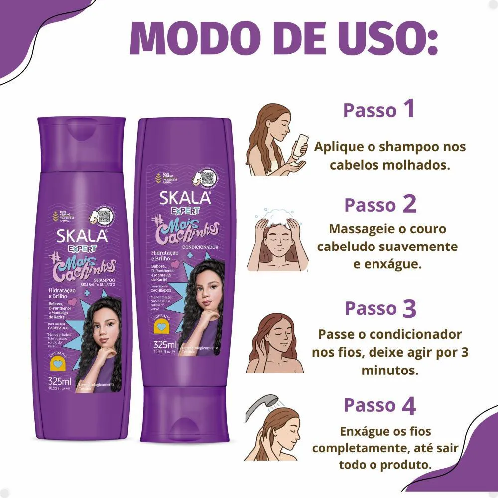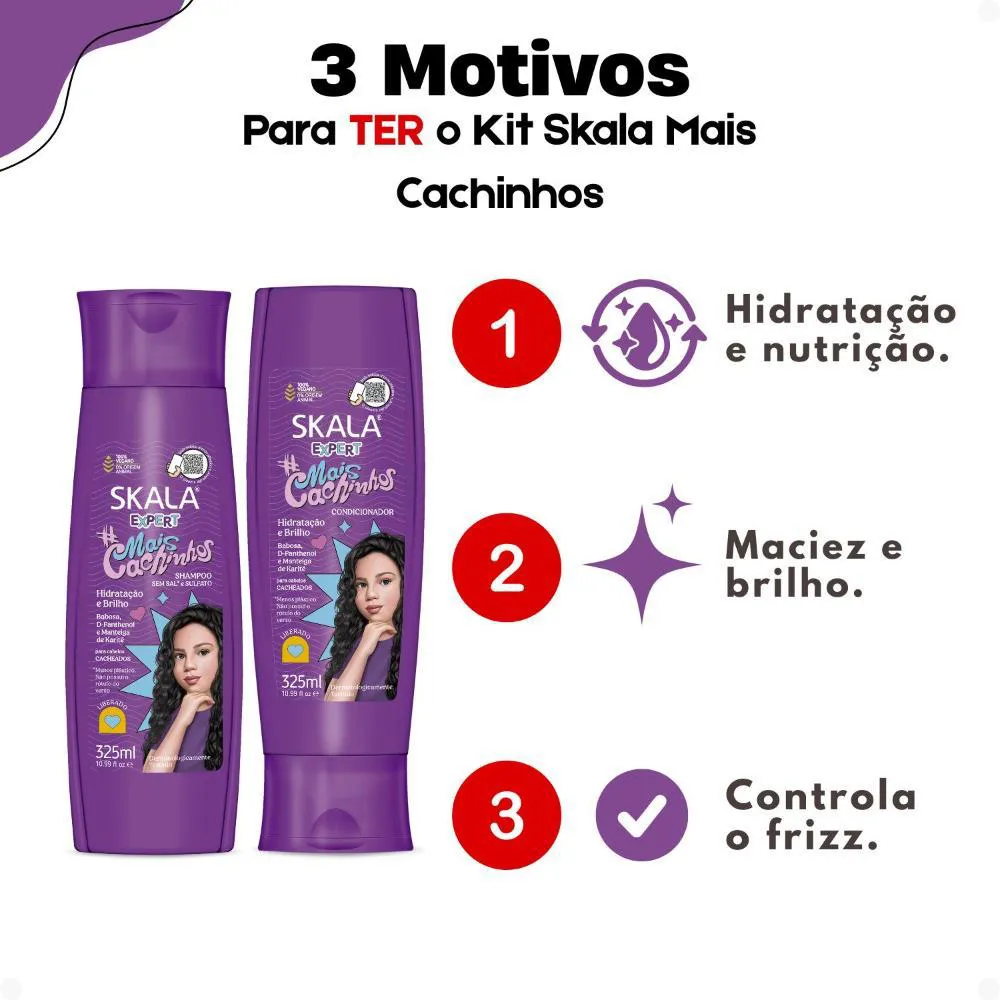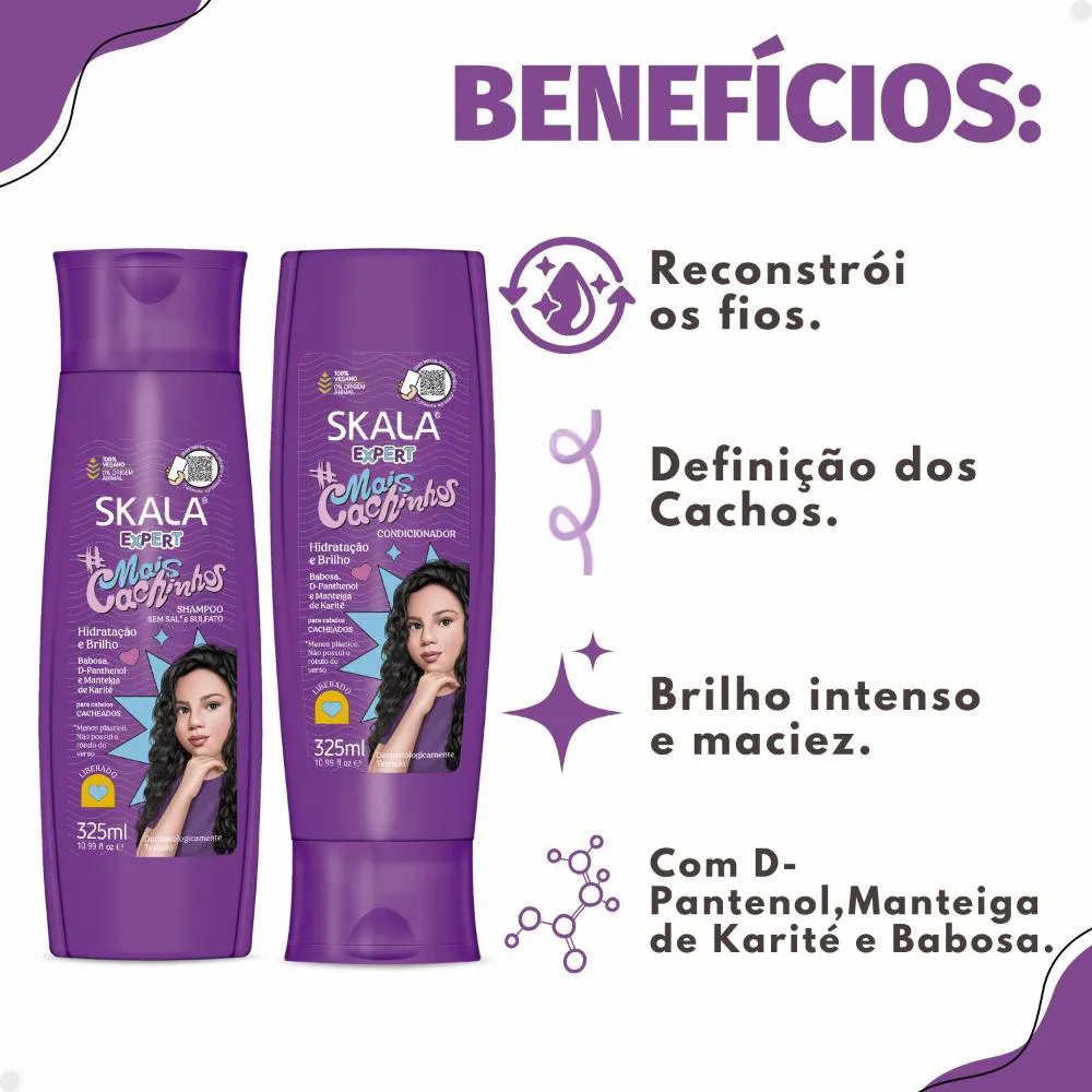 Kit Skala Expert Mais Cachinhos: shampoo e condicionador 325ML - Cabelos Definidos e Hidratados