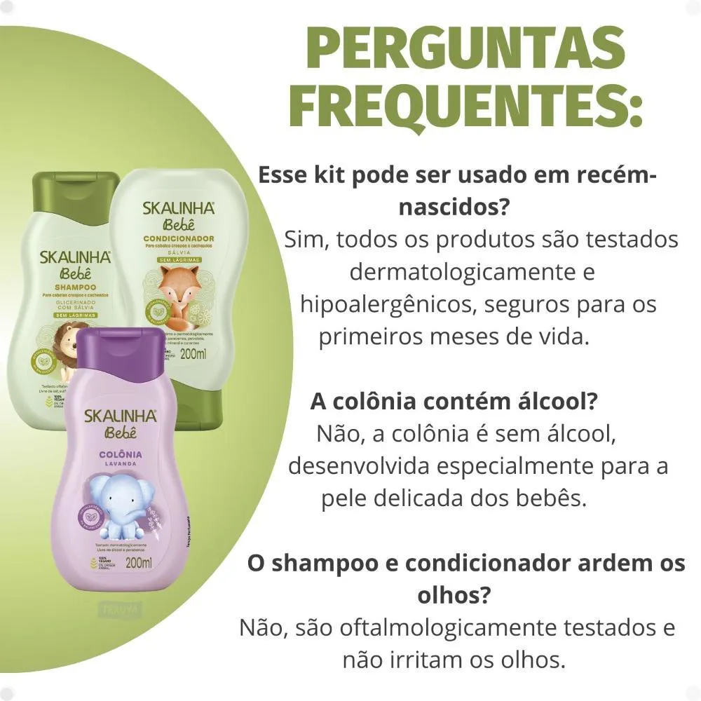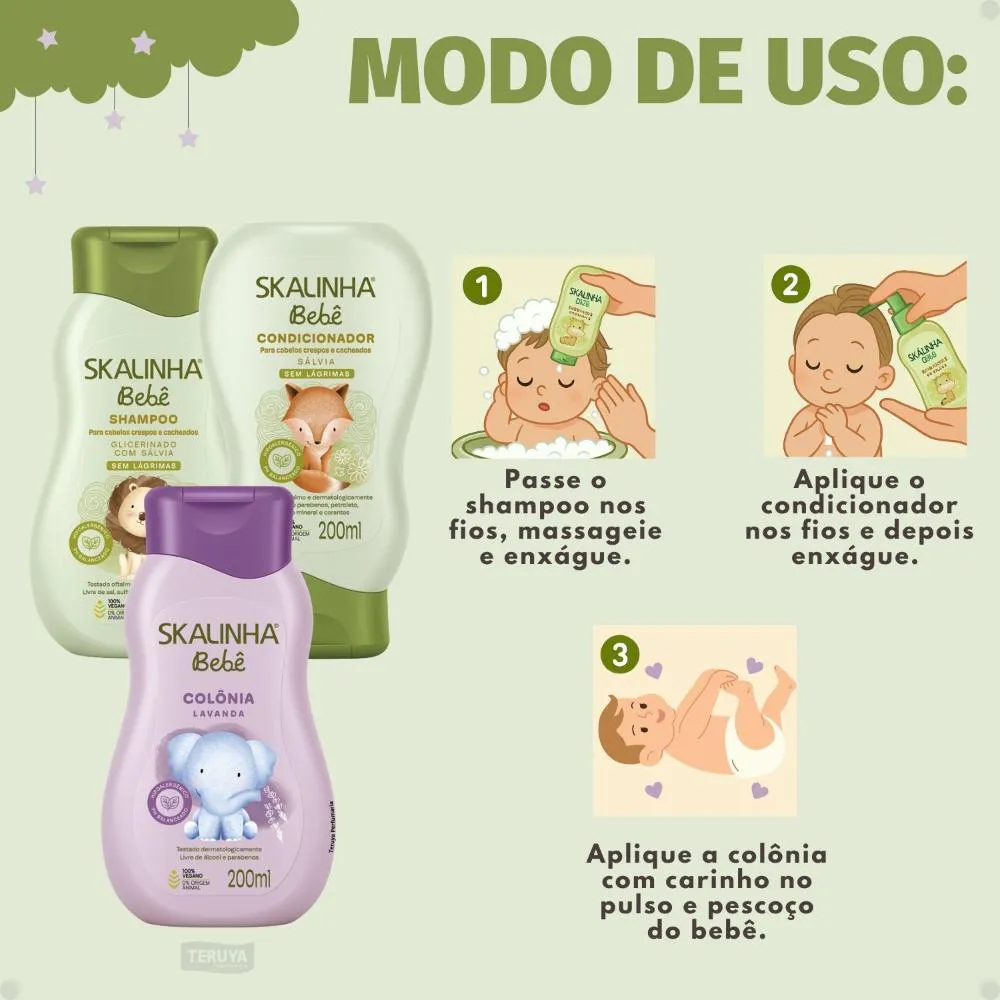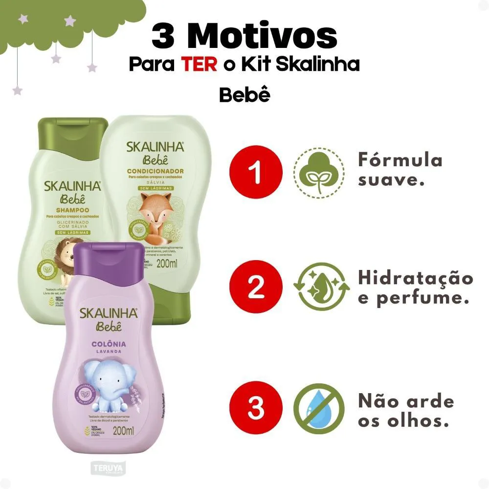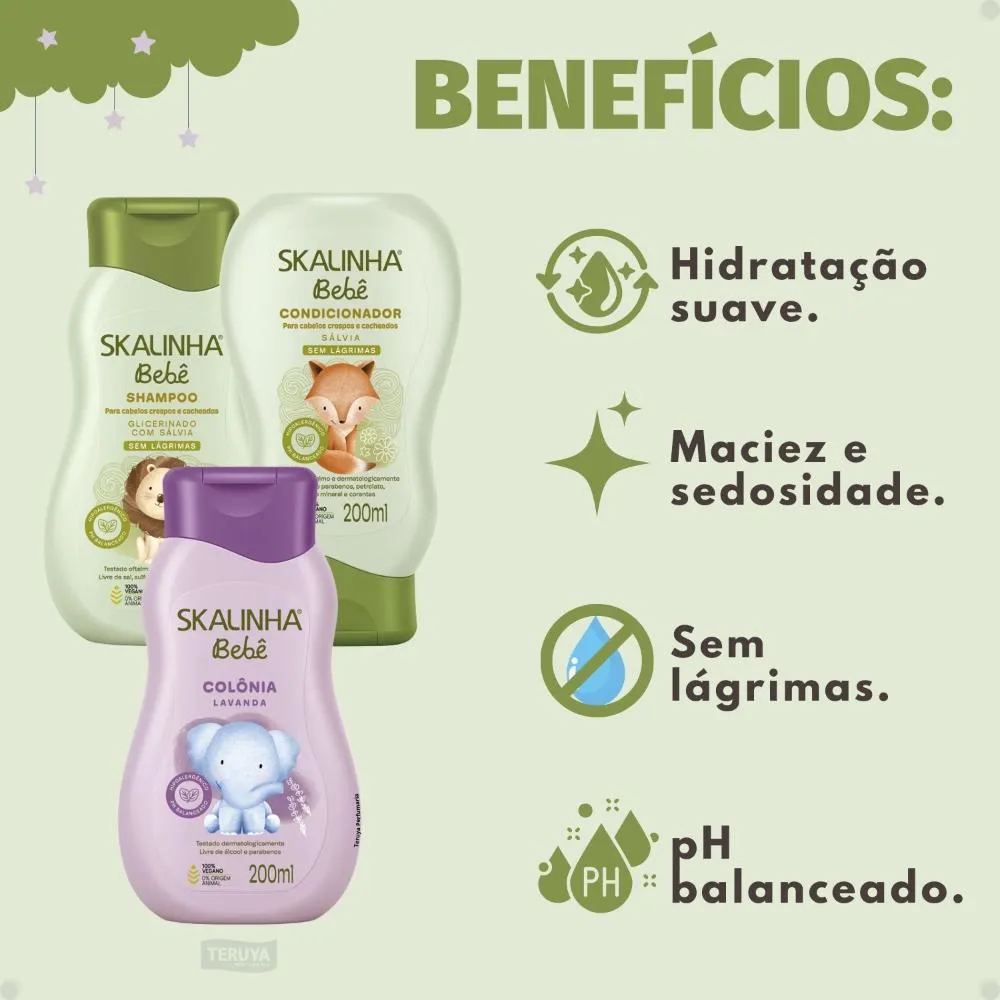 Kit Skalinha Bebê para Cabelos Crespos e Cacheados: Shampoo e Condicionador 200Ml + Colônia Lavanda 200Ml