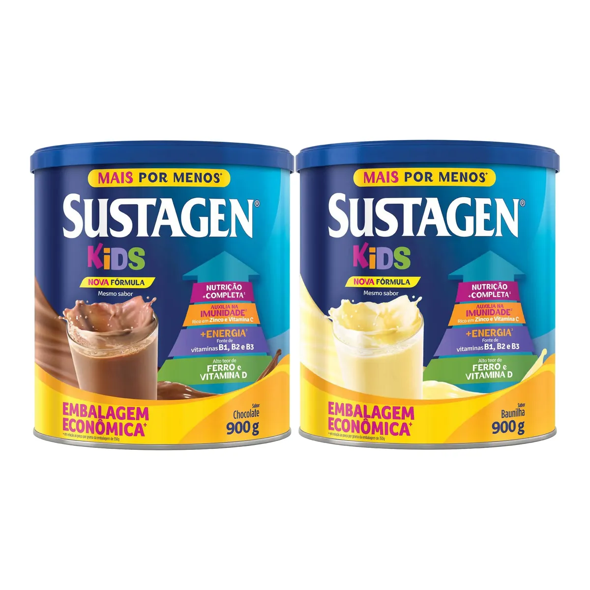 Kit Sustagen Kids Suplemento Infantil 3 anos Chocolate 900g + Baunilha 900g