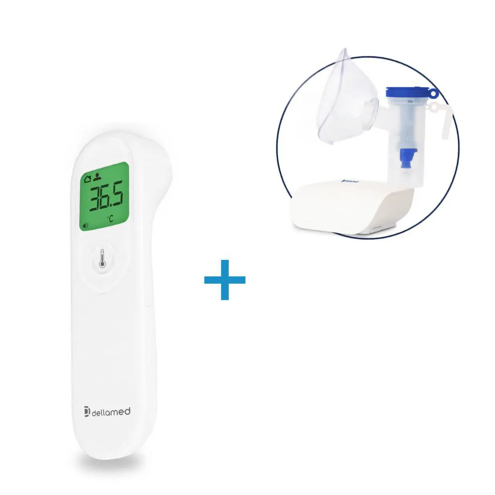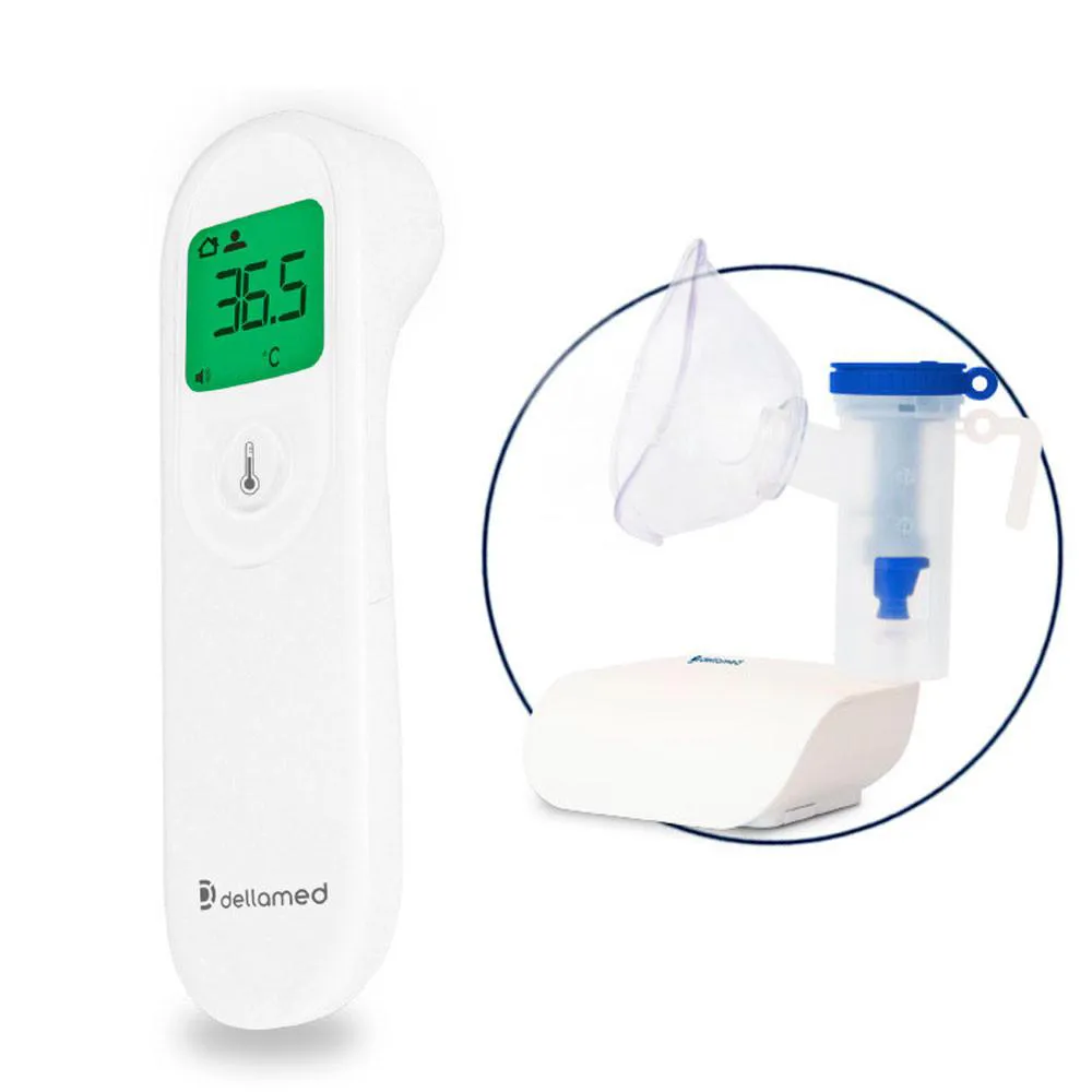 Kit Termômetro Infravermelho + Nebulizador Compacto Dellamed Branco
