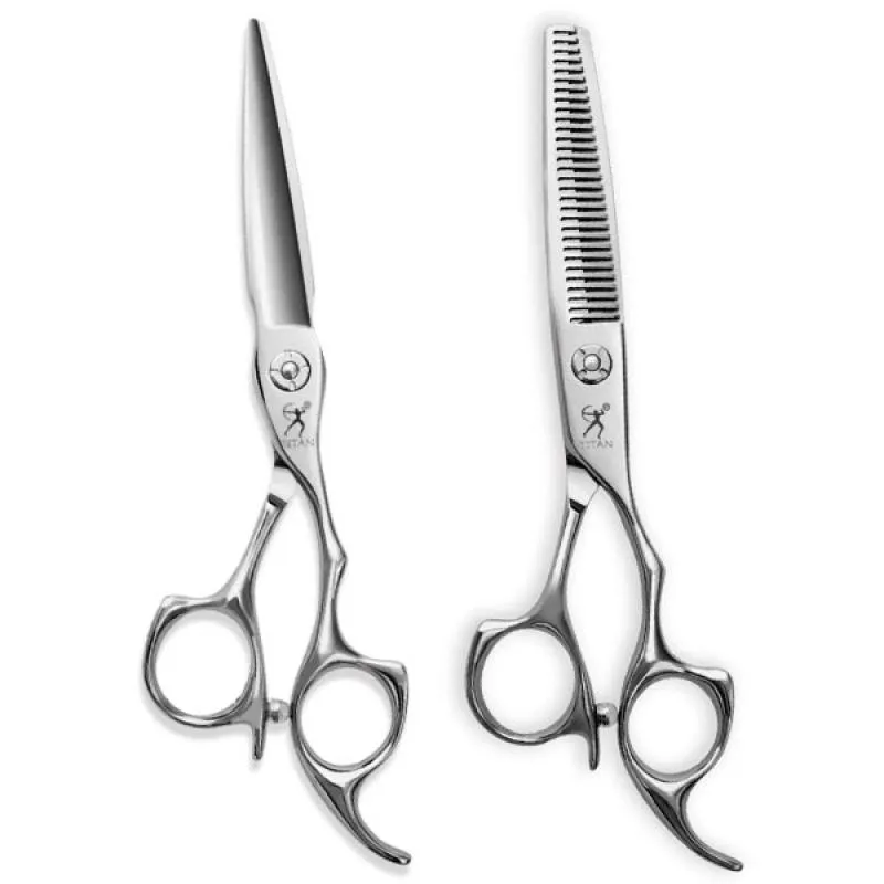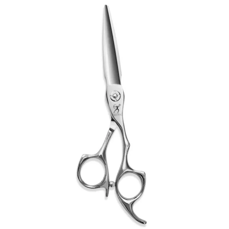 As Tesouras TITAN são feitas em um aço sus440c especializado de alto qualidade. A tesoura TITAN é projetada para cortes de cabelo úmido ou seco, porém com maior precisão em cortes a seco. Esta tesoura é projetada com uma lâmina super afiada desenvolvendo um corte perfeitamente equilibrado e super liso. CARACTERÍSTICAS: Feito de aço sus440c premium; É 100% feito à mão e afiada a mãos; Para uso com a mão direita; É produzido para barbeiros e salões de cabeleireiro profissionais; É bem embalado para evitar danos durante a fase de envio e enviado no mesmo dia; As tesouras são verificadas duas vezes antes do envio;