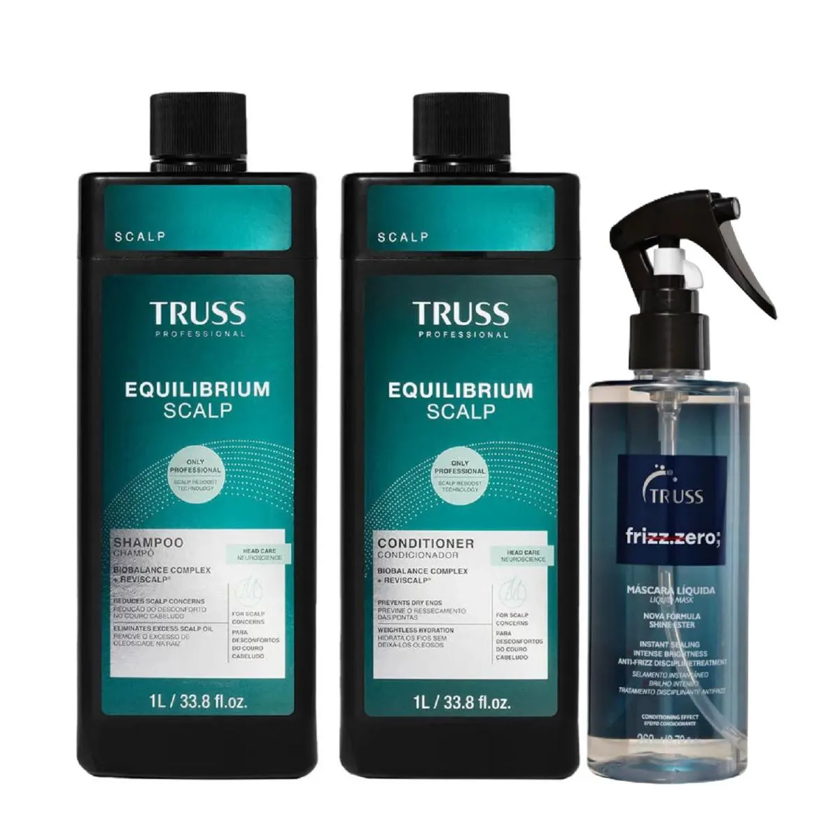KIT TRUSS EQUILIBRIUM SCALP - SHAMPOO 1L + CONDICIONADOR 1L + FRIZZ ZERO MáSCARA LíQUIDA 260ML
