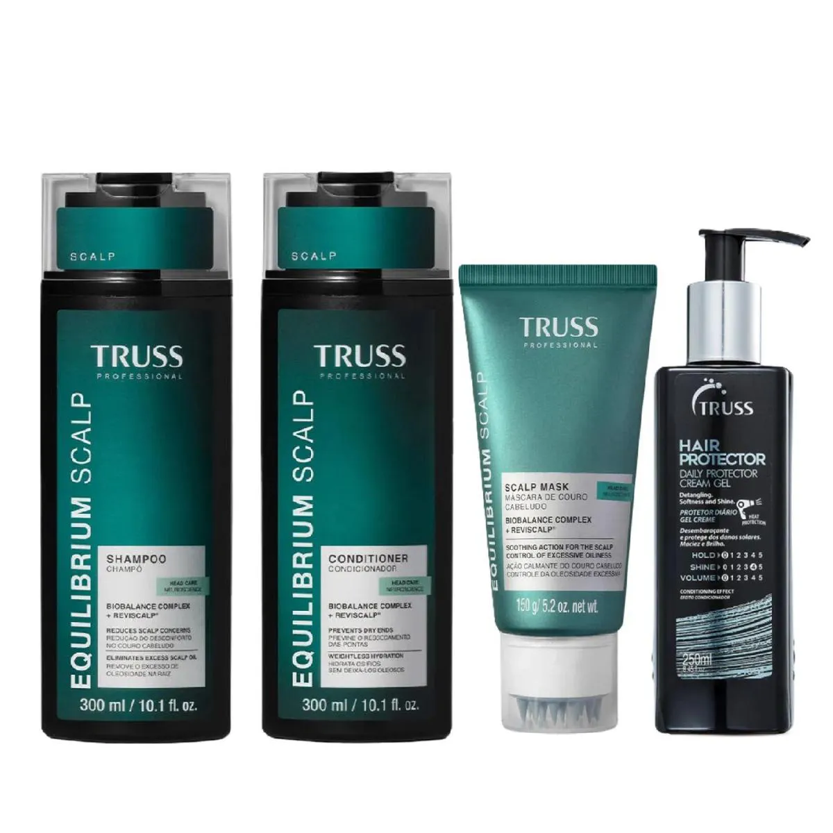 KIT TRUSS EQUILIBRIUM SCALP - SHAMPOO 300ML + CONDICIONADOR 300ML + MáSCARA 150G + HAIR PROTECTOR 250ML