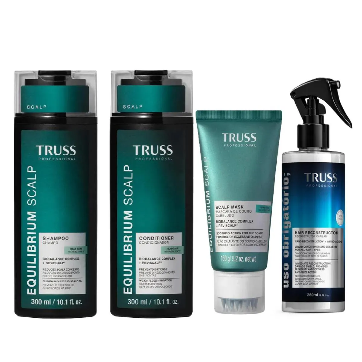 KIT TRUSS EQUILIBRIUM SCALP - SHAMPOO 300ML + CONDICIONADOR 300ML + MáSCARA 150G + USO OBR. RECONSTRUTOR CAPILAR 260ML