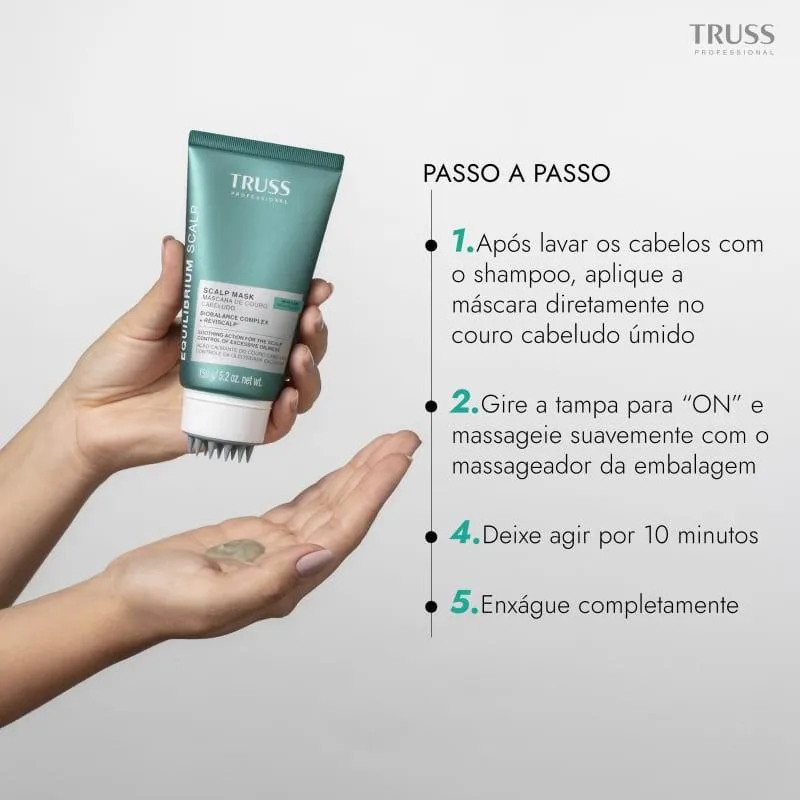 Kit Truss Equilibrium Scalp: Equilíbrio Completo para Raiz Oleosa e Pontas Secas O Kit Truss Equilibrium Scalp oferece um tratamento completo e balanceado para cabelos que sofrem com couro cabeludo oleoso e pontas secas. O Kit Truss Equilibrium Scalp tratamento capilar Trio proporciona uma limpeza profunda, hidratação intensa e controle total da oleosidade, deixando os cabelos muito mais saudáveis, brilhantes e livres dos incômodos causados pela descamação. A tecnologia Scalp Reboost conta com dois ativos: Bio Balance Complex e Reviscalp, ativos de origem vegetal e efeito sinérgico que atuam no couro cabeludo combatendo as desordens, reduzindo o estresse oxidativo e regenerando a microbiota capilar. Além disso, agem no comprimento ao hidratar a fibra e evitar oleosidade intensa.