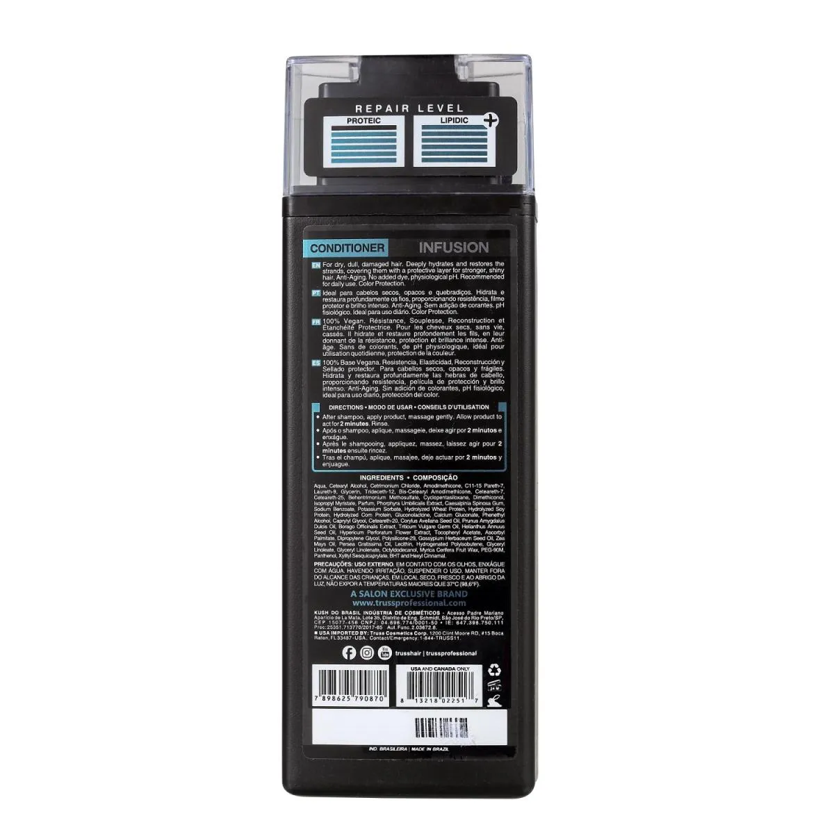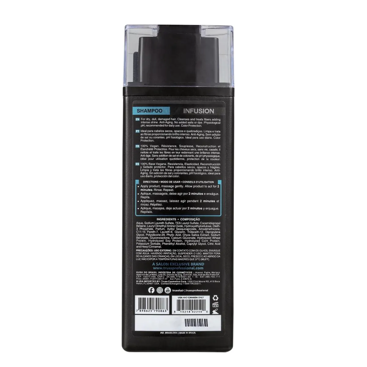 Truss Infusion - Shampoo 300ml: auxilia na reparação e fortalecimento dos fios, restaurando a resistência, flexibilidade e saúde do cabelo. Limpa de forma suave, o que mantém a cor dos cabelos coloridos.