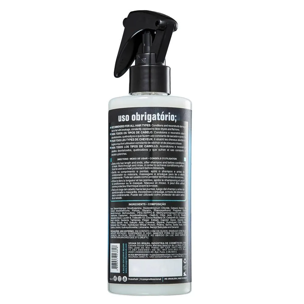 Truss Uso Obrigatório - Tratamento Reconstrutor 260ml: age na reconstrução das partes fragilizadas do fio, restaurando a força e a resistência. Traz de volta o aspecto saudável do cabelo quimicamente tratado, disciplinando os fios, protegendo do calor do secador e evitando a formação de pontas duplas.