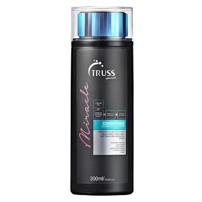 Truss Miracle - Condicionador 300ml: desembaraça, condiciona os fios, proporciona maciez e brilho 3D. Também recupera a elasticidade e resistência, ajudando no crescimento saudável da fibra capilar. Acaba com o frizz e mantém os fios sedosos e suaves por muito tempo.