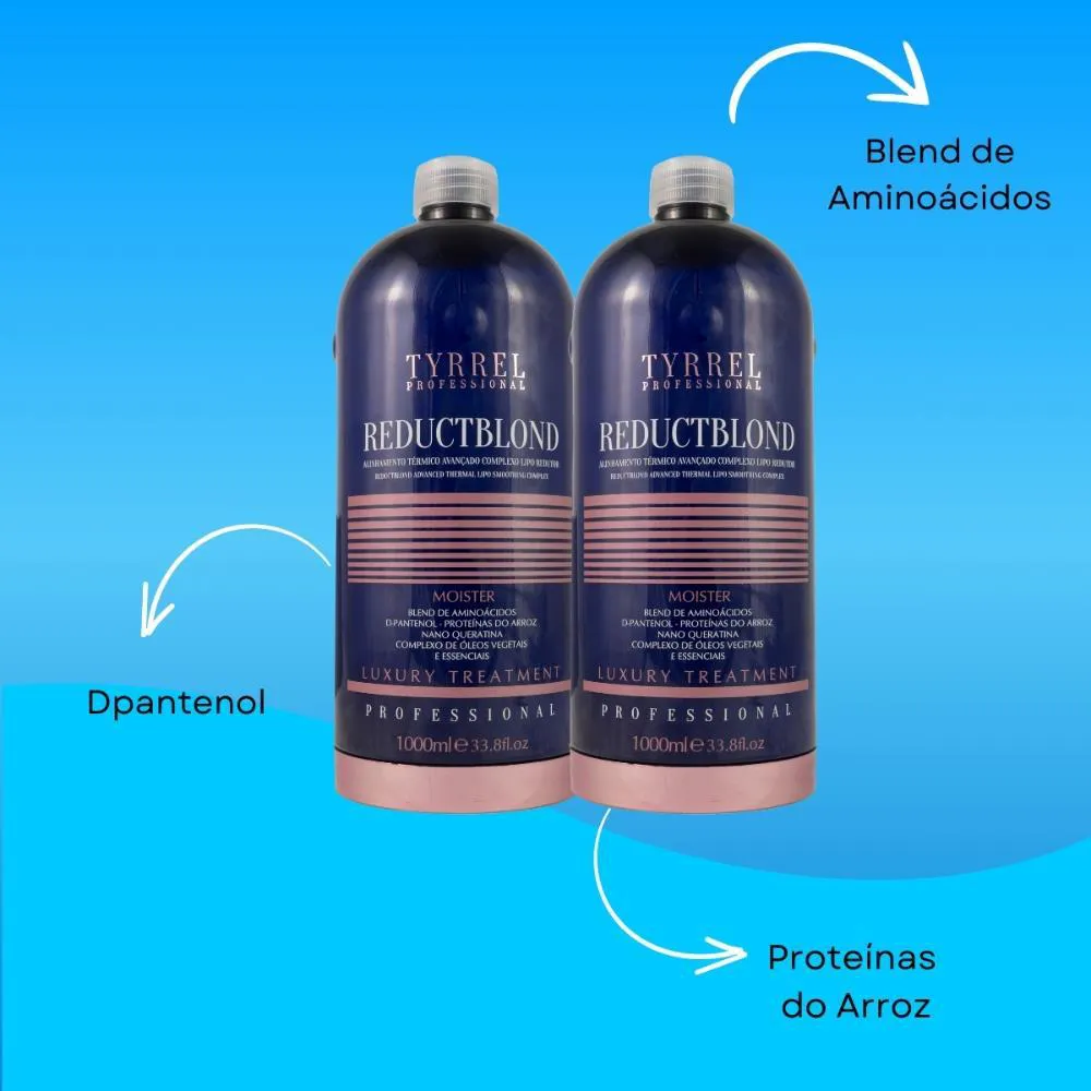 Alinhamento Térmico Avançado RedutctBlond Tyrrel Pro foi desenvolvido com ativos nanotecnológios com alta penetração na fibra capilar, promovendo alinhamento das células cuticulares, ação regenerativa preservando a integridade da fibra capilar.