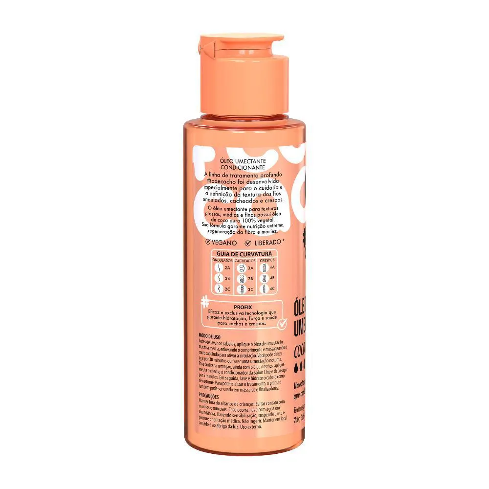 O Óleo de Umectação #todecacho Coco Puro contém óleo de coco puro e natural em sua fórmula que garante nutrição extrema aos cabelos, regeneração das fibras capilares e maciez. Além disso, aliado à tecnologia PROFIX, proporciona força intensa, revitalização completa dos fios e combate ao frizz.