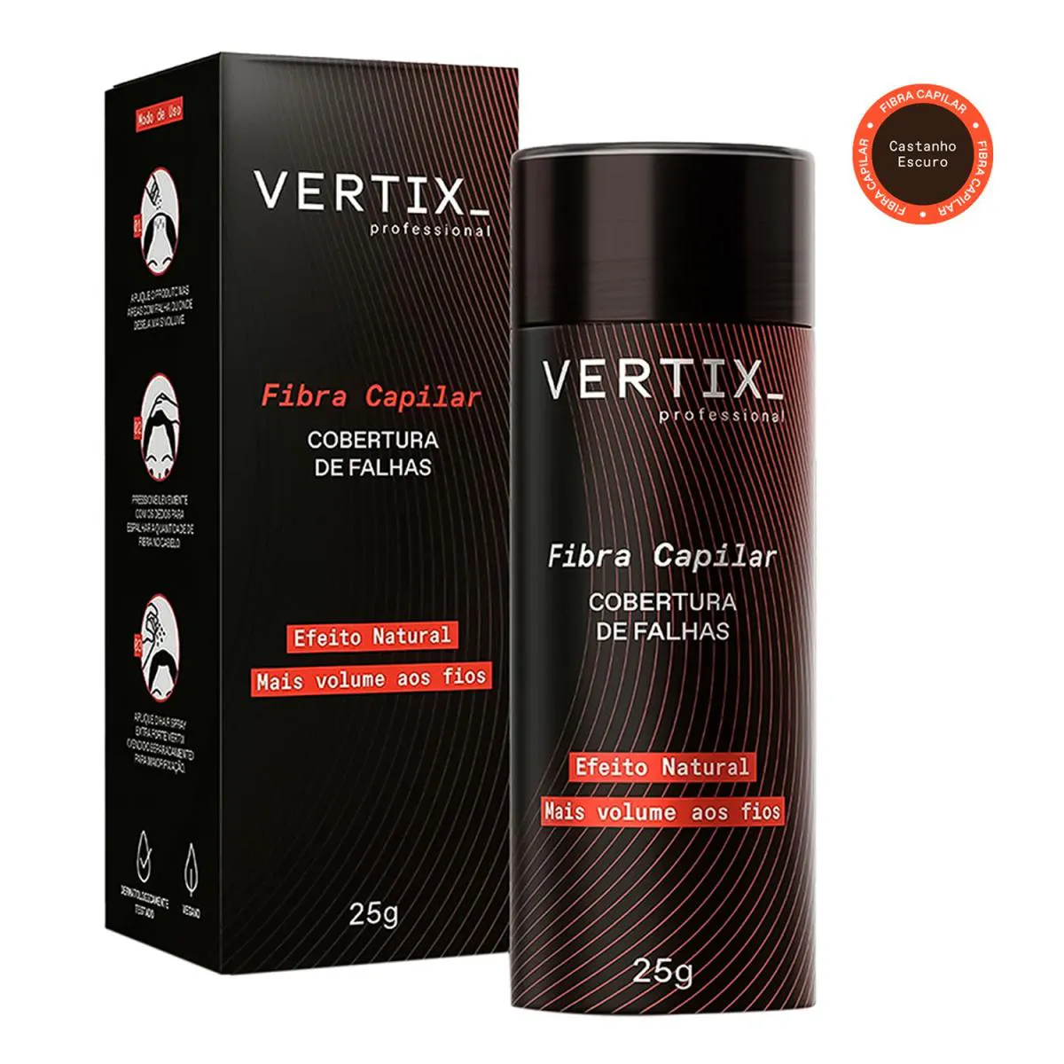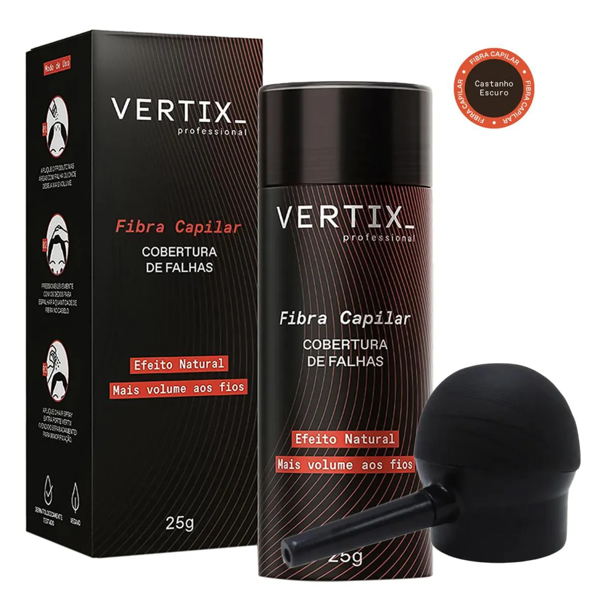 Kit Vertix Professional Fibra Capilar Castanho Escuro 25g + Spray Aplicador