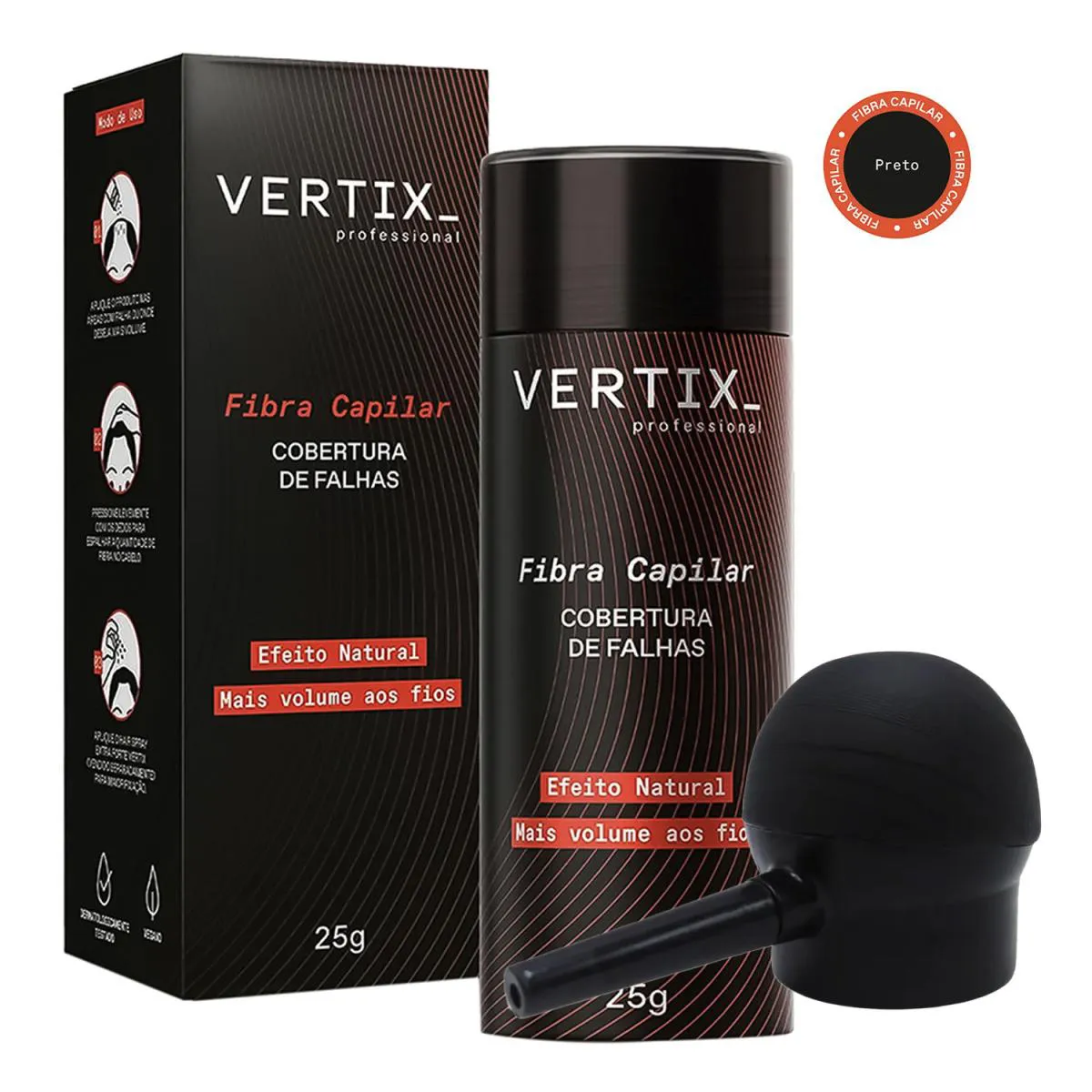 Kit Vertix Professional Fibra Capilar Preto 25g + Spray Aplicador