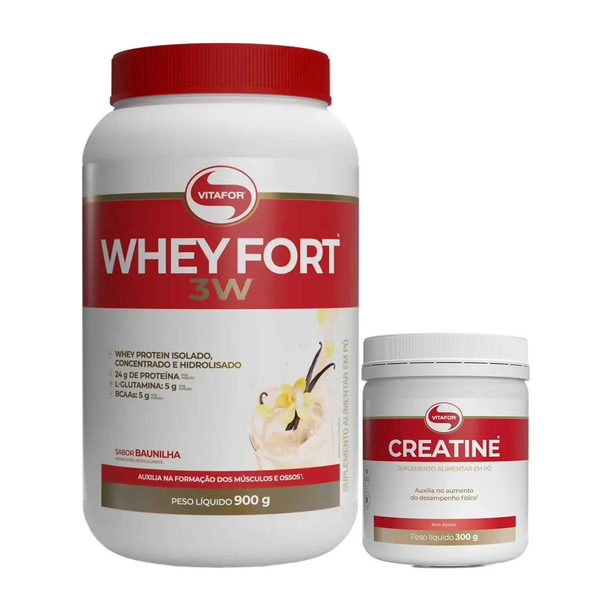 Kit Vitafor Whey Protein Fort 3W Baunilha 900g + Creatina Creatine 300g